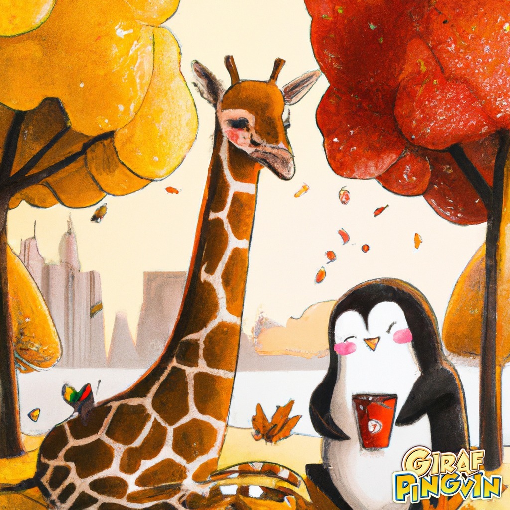 Nyd efterårets magi med mine bedste venner 🦒🐧 og en kop kaffe ☕️ - tak til AI-tegnede eventyr! Video om Dall-E på vej!