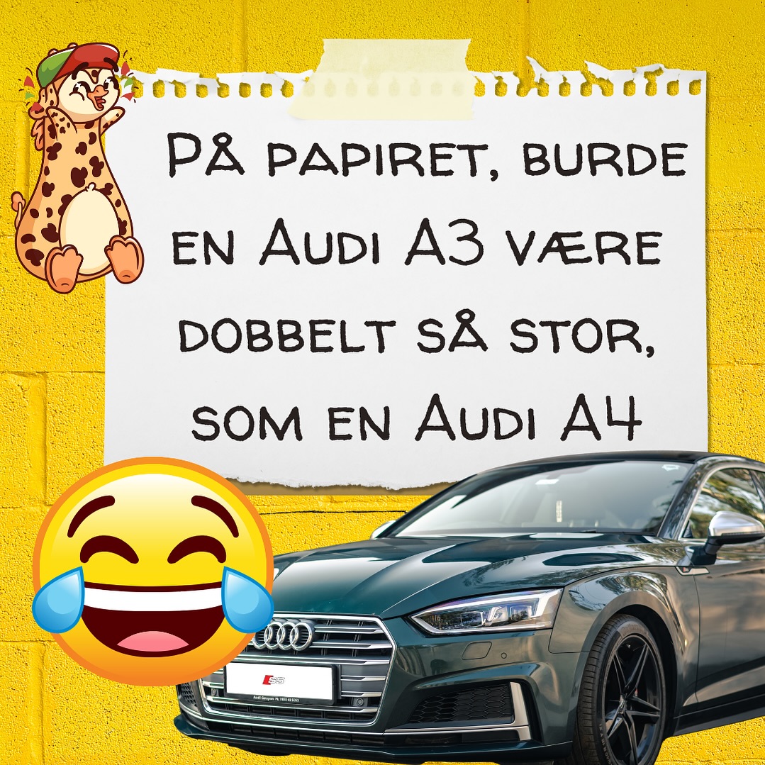 Farhumor: Audi A3 vs. Audi A4 På papiret, burde en Audi A3 være dobbelt så stor, som en Audi A4. #farhumor #vittighed #audi
