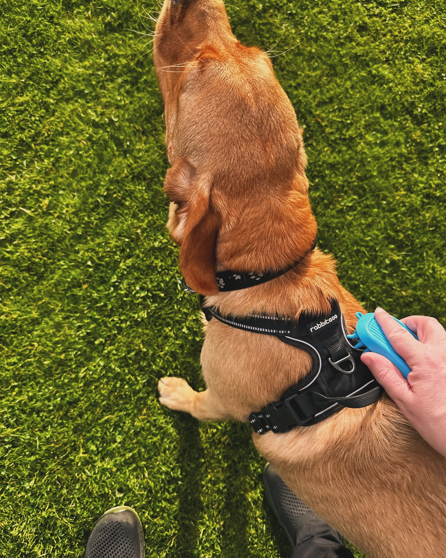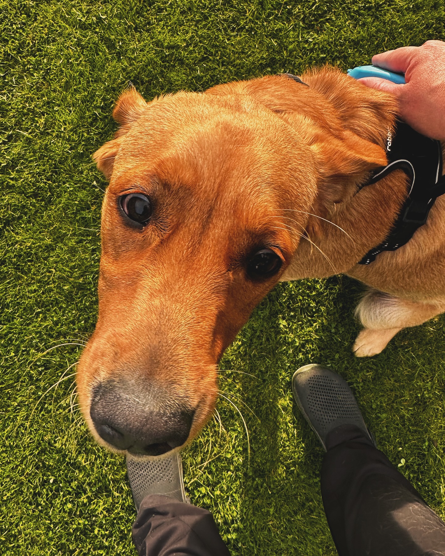 Der gik ikke mere end 5-8 minutter, så havde han fattet, at det måske var smart at lade være med at gø af græsslåmaskinen, fordi så var der godbidder og ros. 🎉