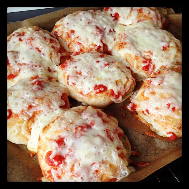 Så er Daniels hjemmelavede mini pizzaer færdige. Num. Num.
