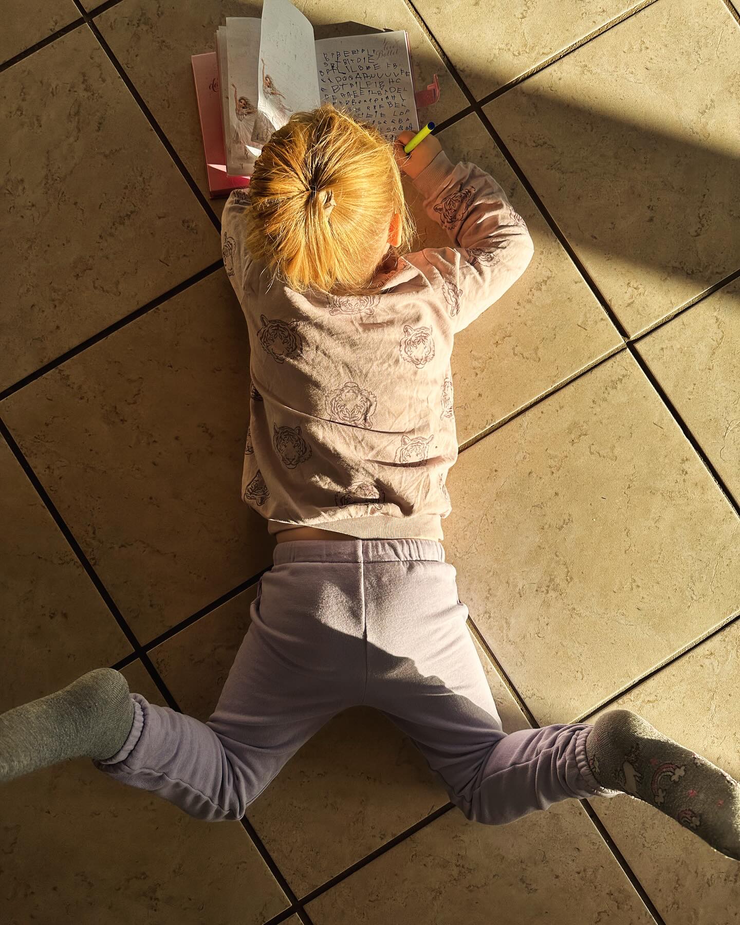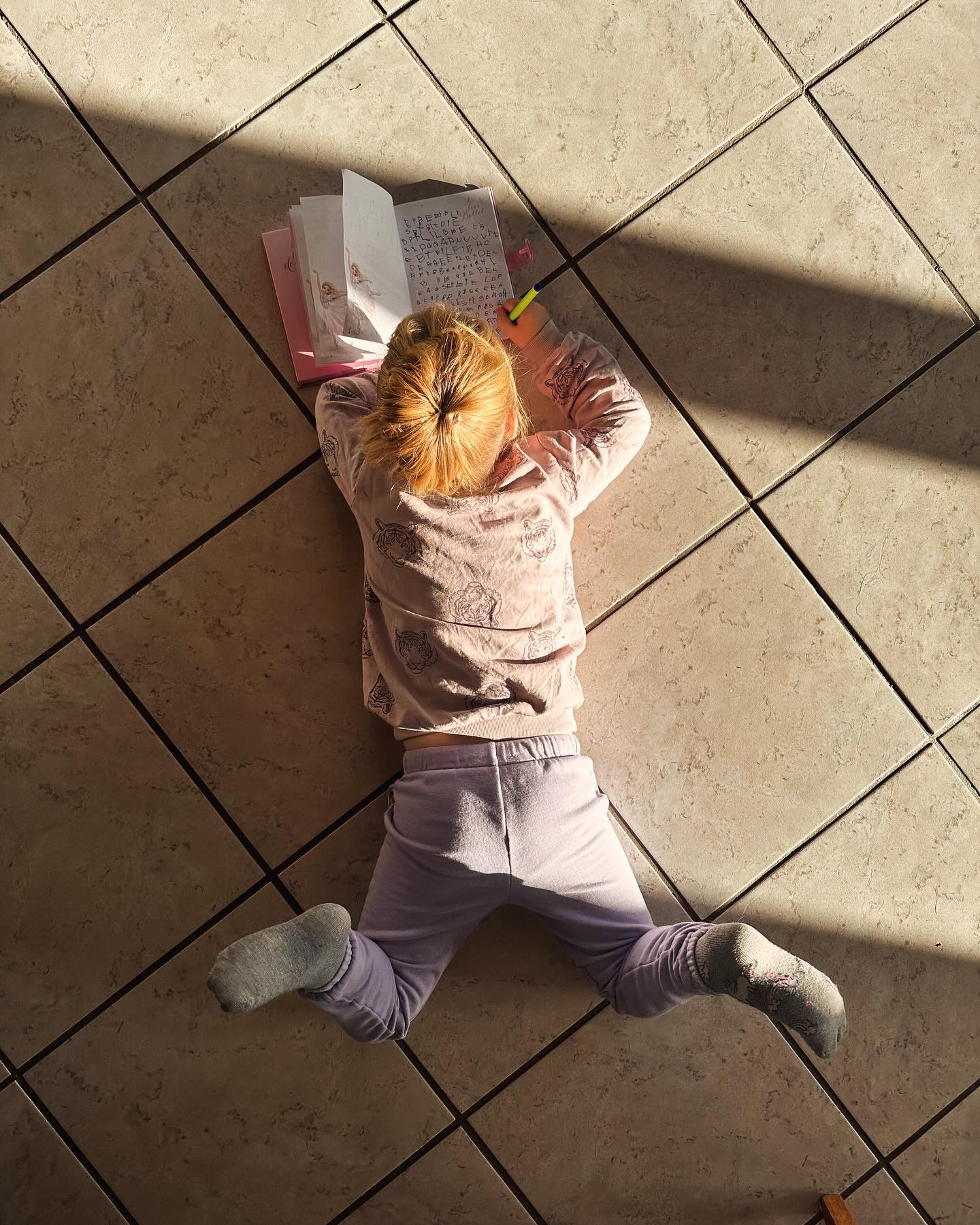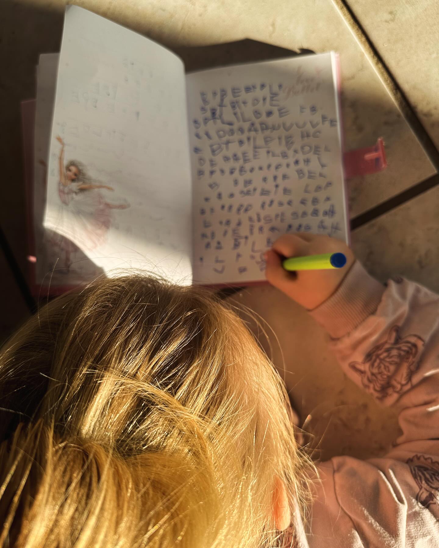 Tilde mener hun kan skrive nissesprog. Så her er hun i gang med et langt brev til Rumle hvor hun siger tak for gaverne og fortæller om sin dag 😍❤️