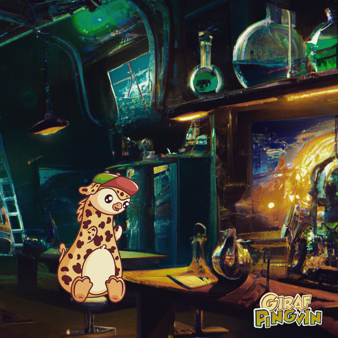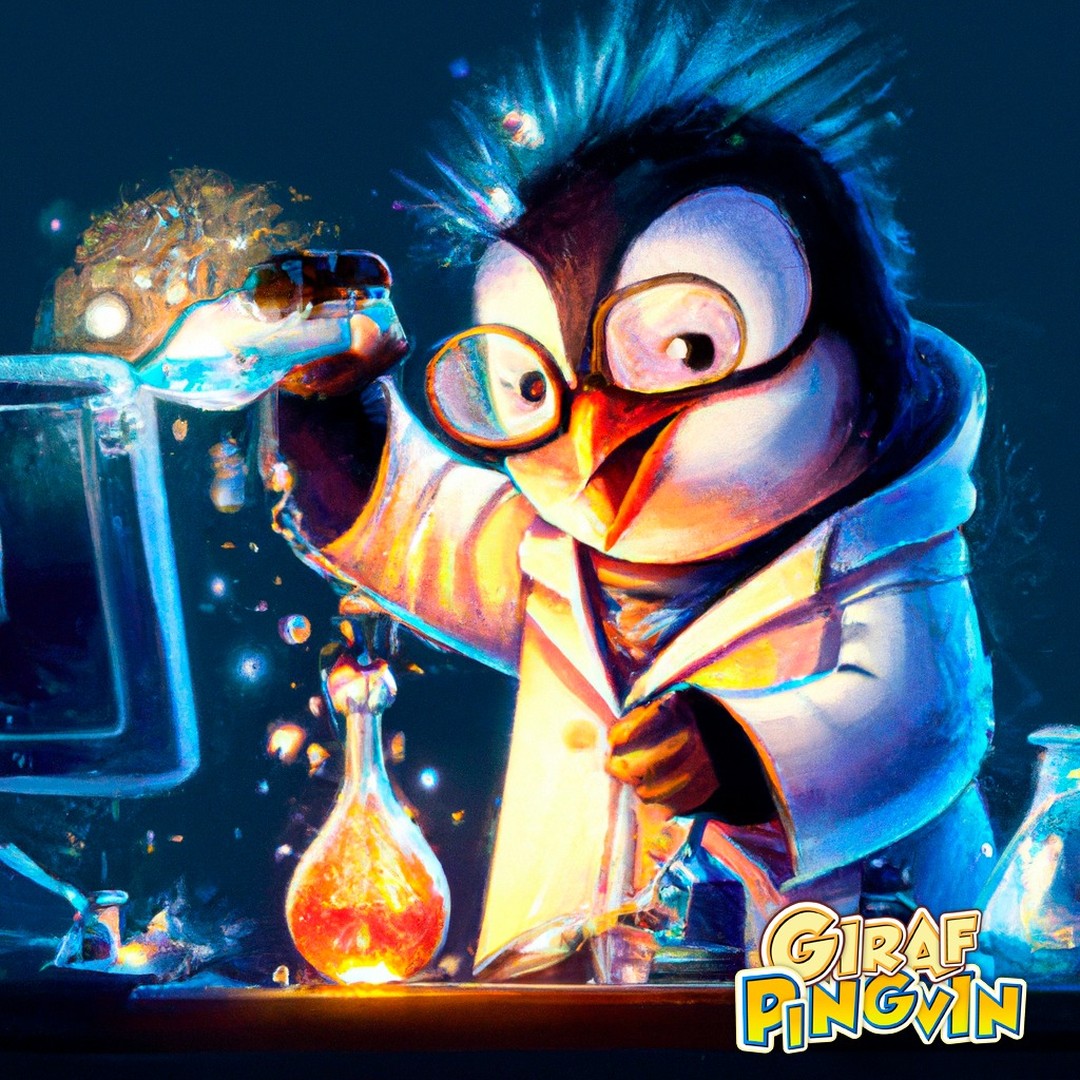 Fra lille, tyk pingvin til høj, nuttet girafpingvin. En magisk elixir - et græsstrå, en rød kasket og et giraffeknurhår - kan ændre alt! 🐧🦒✨
