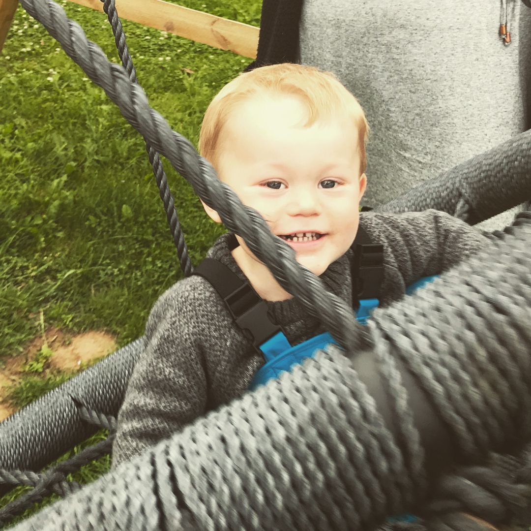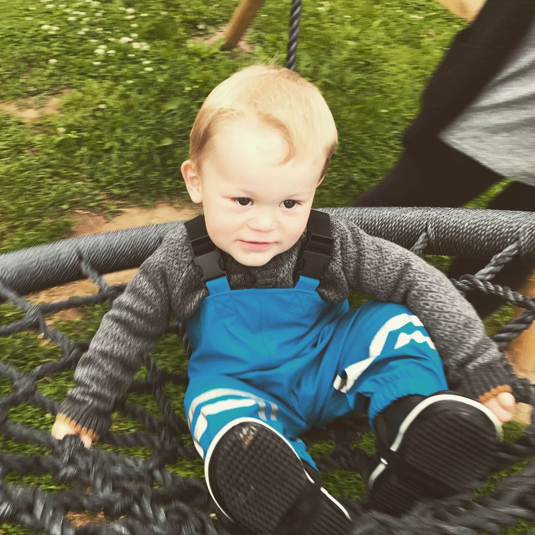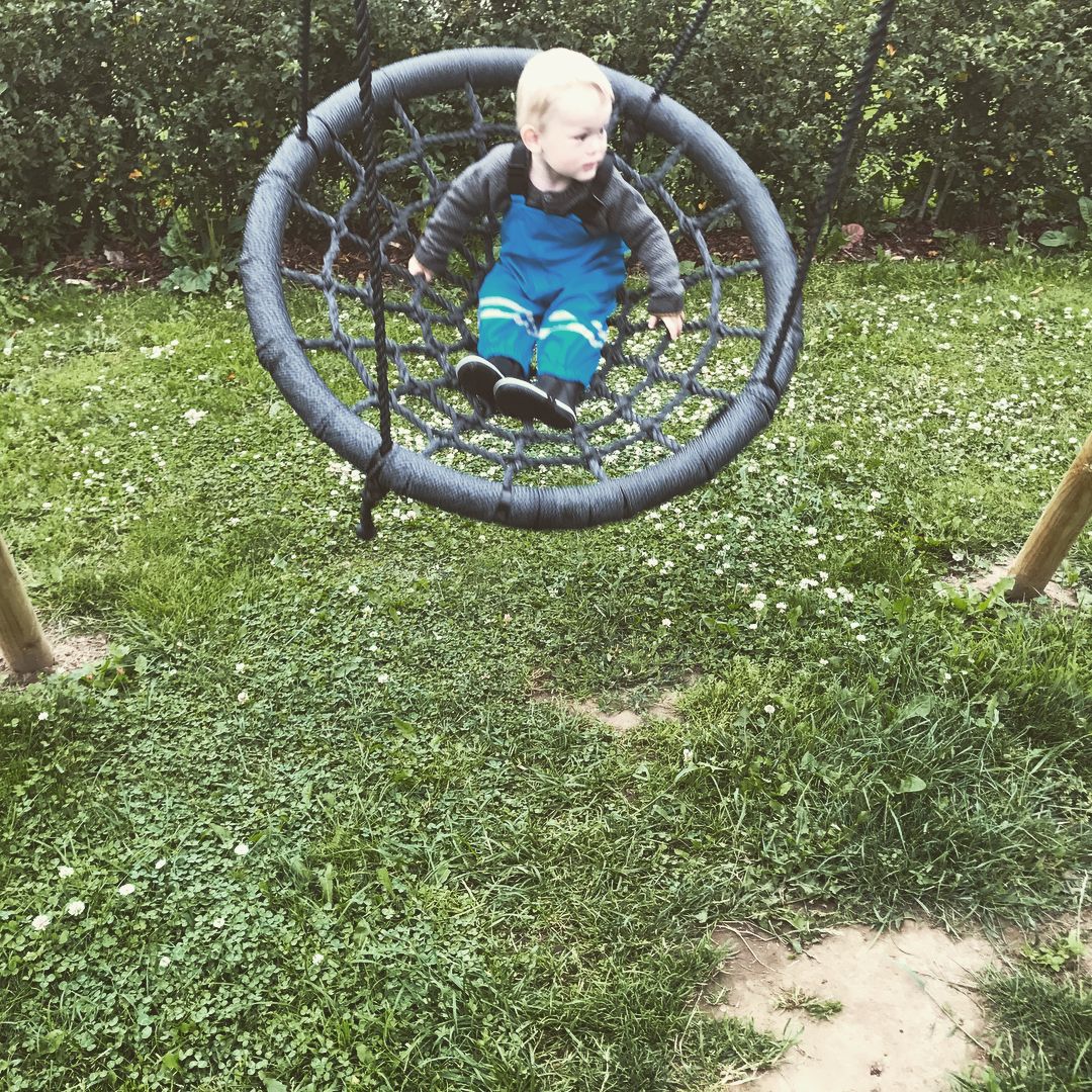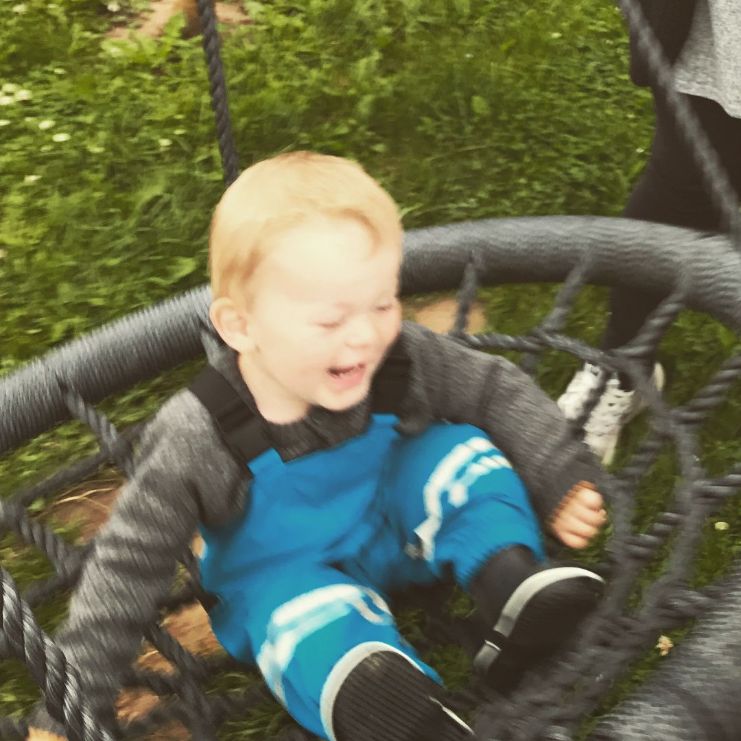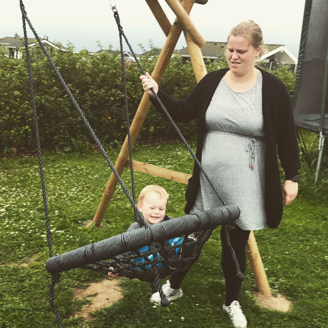 Solen skinner, og vi nyder tiden sammen. Børnene leger og smiler stort - en perfekt dag for både forældre og børn.