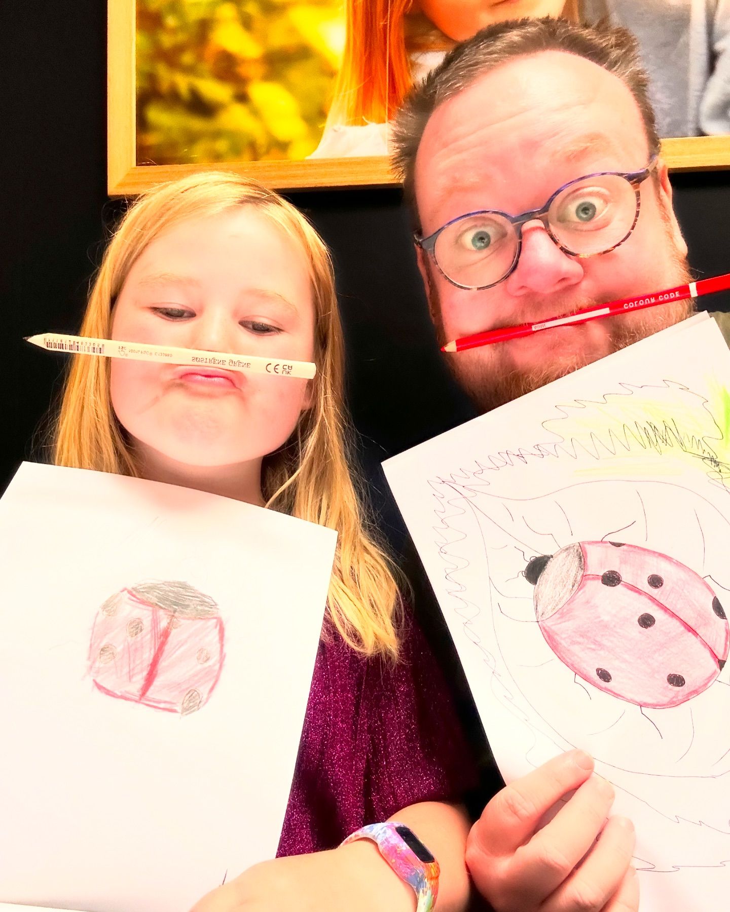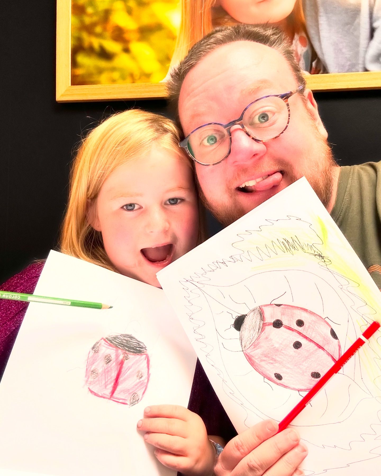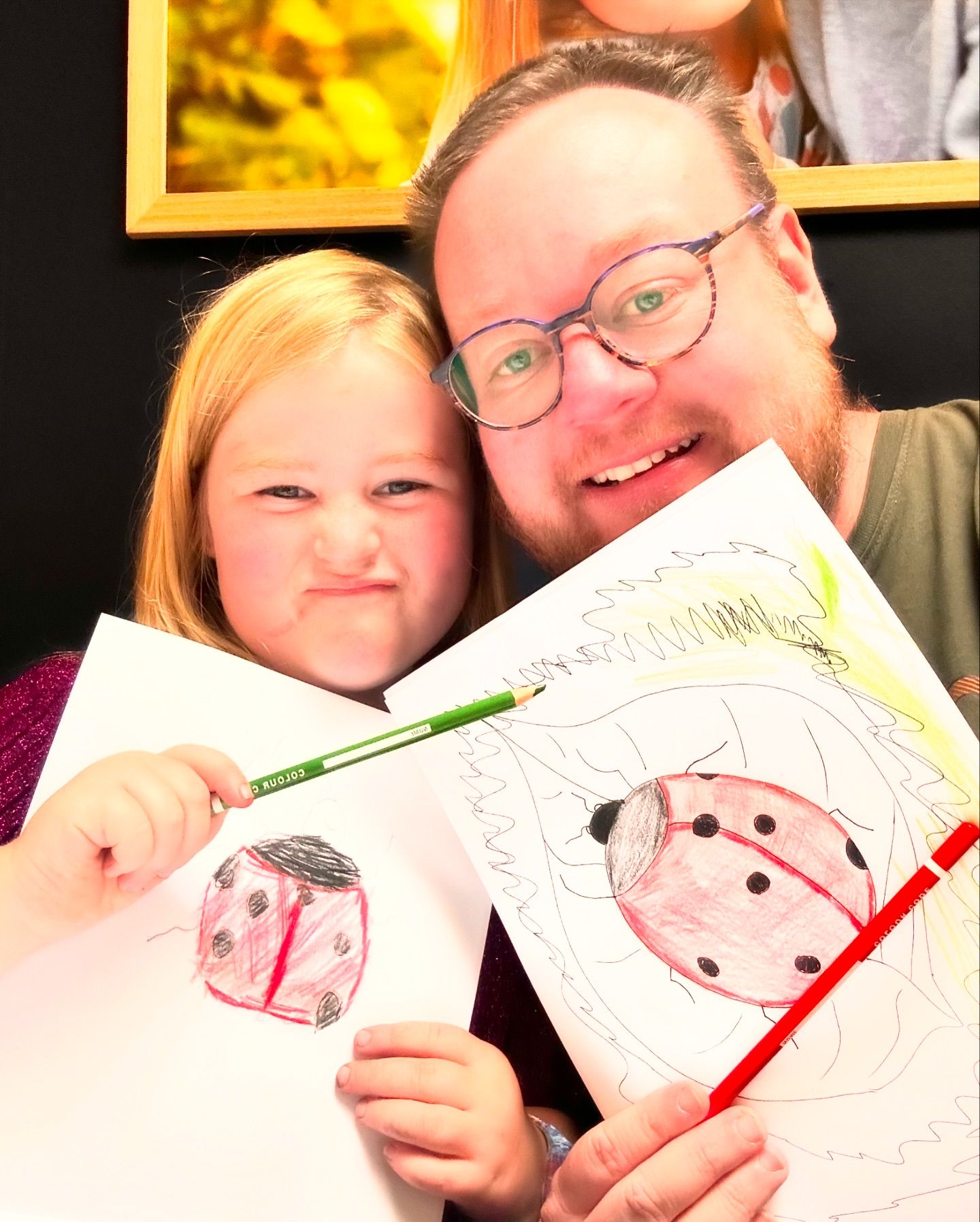 Kreahygge med Tilde! 🌟🐧 Min lille kunstner Tilde og jeg hygger med at tegne mariehøner 🐞🖍️ Familie ❤️ + kreativitet 🎨 = Perfekt kombi 🙌