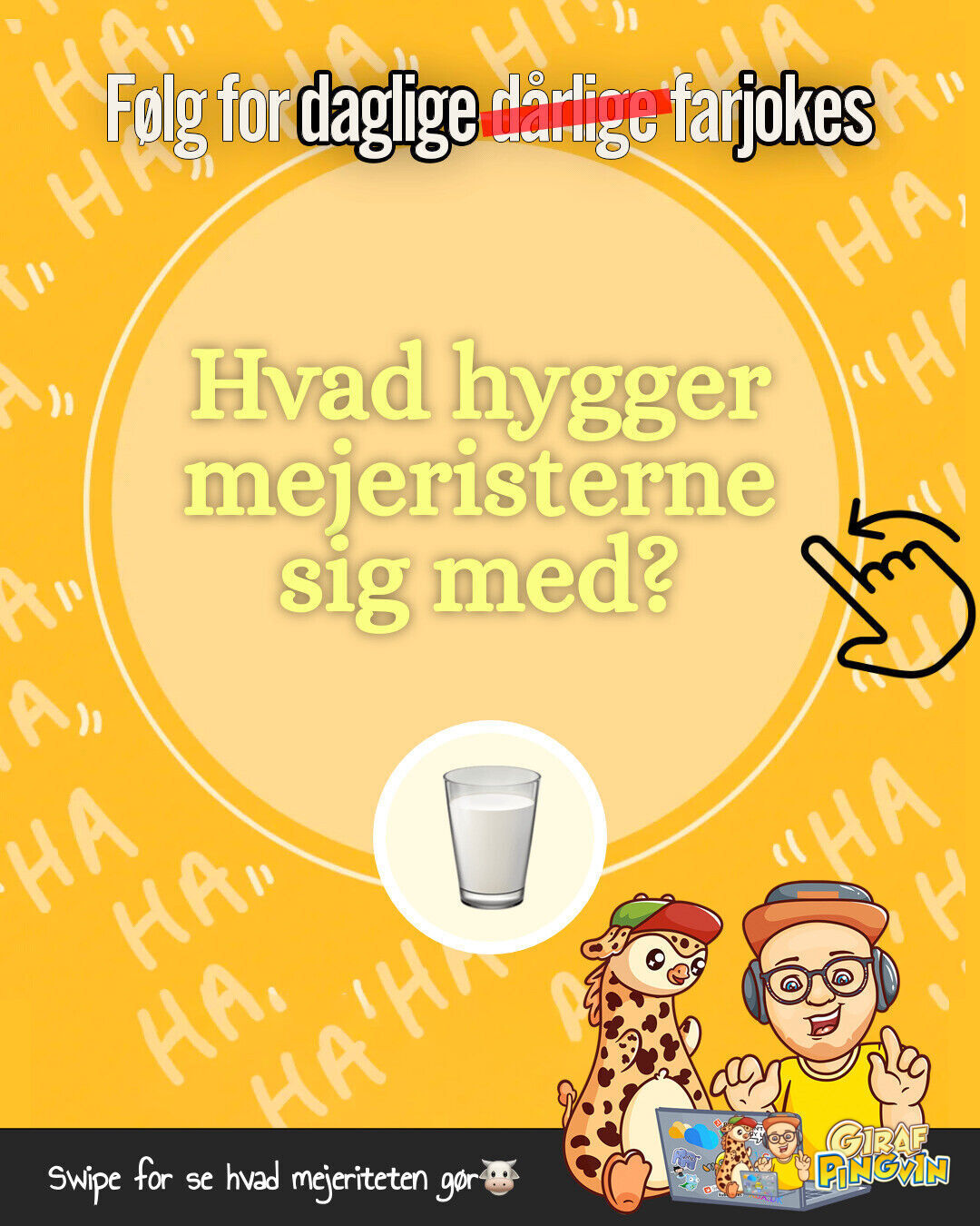 ‘Husk, jeg 𝙎𝙠𝙮𝙧 🥛 ingen midler for at få jer til at grine 😅🤣’sådan er det bare, når man er en malkemester i mælke-humor 🐄🥛😂