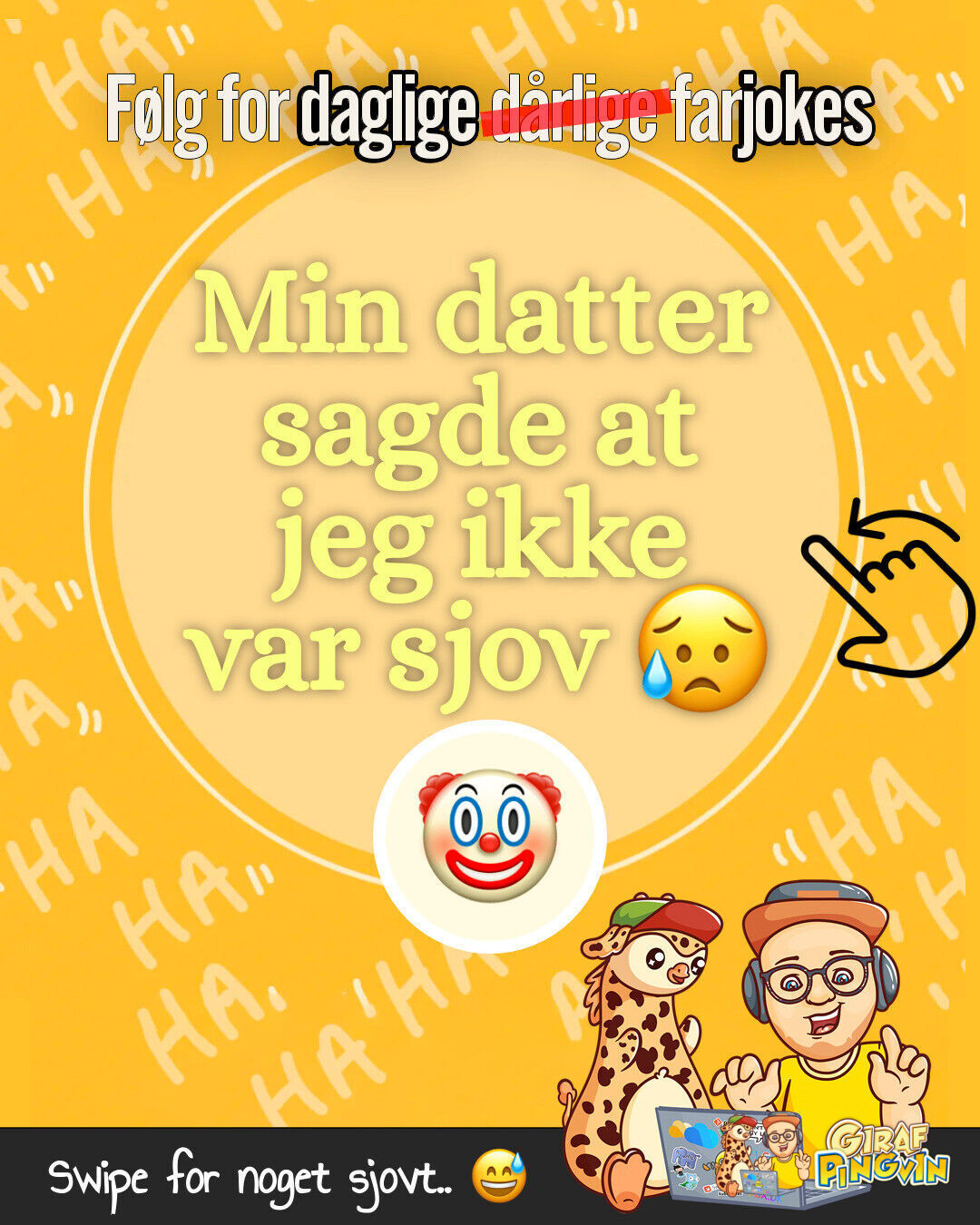 Dagens #Farhumor: Min datter Tilde Min datter Tilde sagde, at jeg ikke var sjov 😥 🤡 Jeg svarede, at jeg var overskæg...🫣😅🤣 🤡🥸 Følg med for flere beretning fra mit liv! 😜