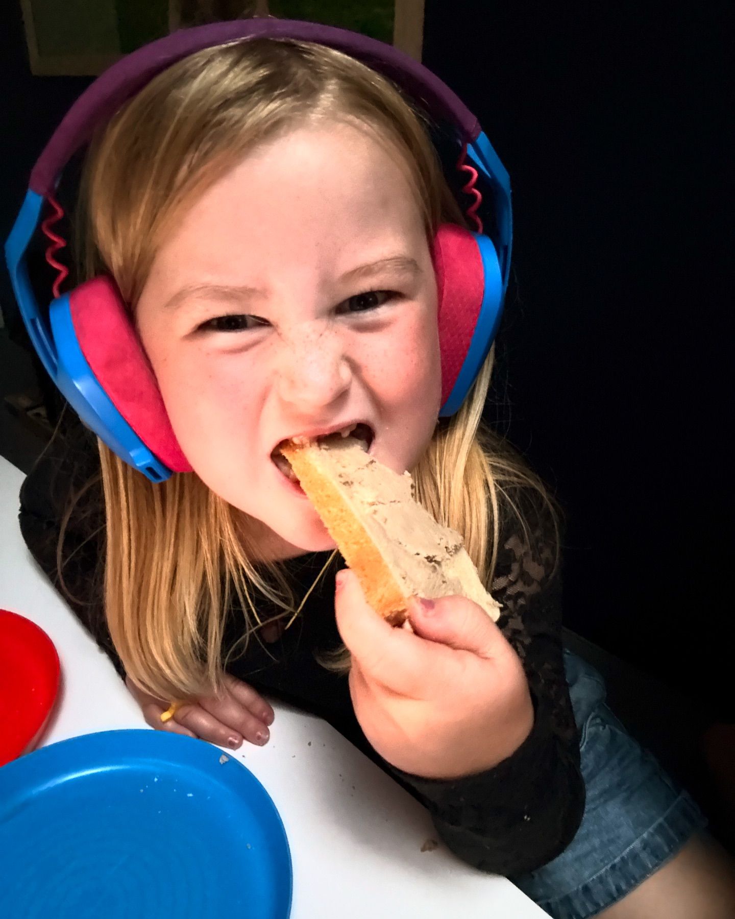 Og nu slapper vi af, mens Tilde har kokkereret aftenens gourmetmåltid til hende og jeg: toast med leverpostej 😂🫣😍 What’s not to love? 🚀💕
