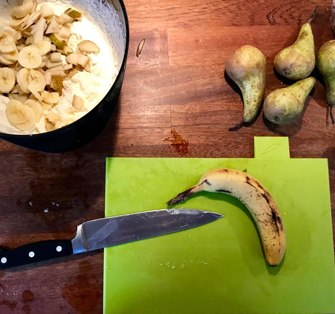 Frugtsalat fiesta med bananer, blåbær, pærer og æbler! 🍌🍏🥗