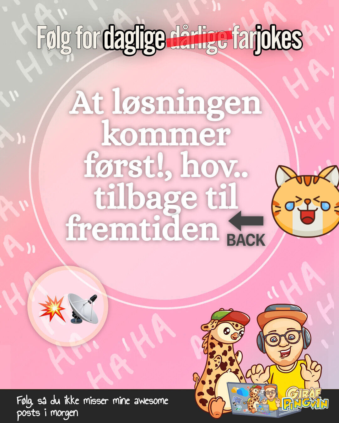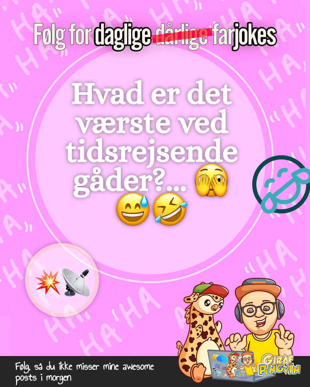 Er du klar til en ny omgang farhumor direkte fra min Zoo? 🦒🐧😂 Tænk over tidsrejser, og husk: dessert før forret er altid en vinder! 🍨🚀💛