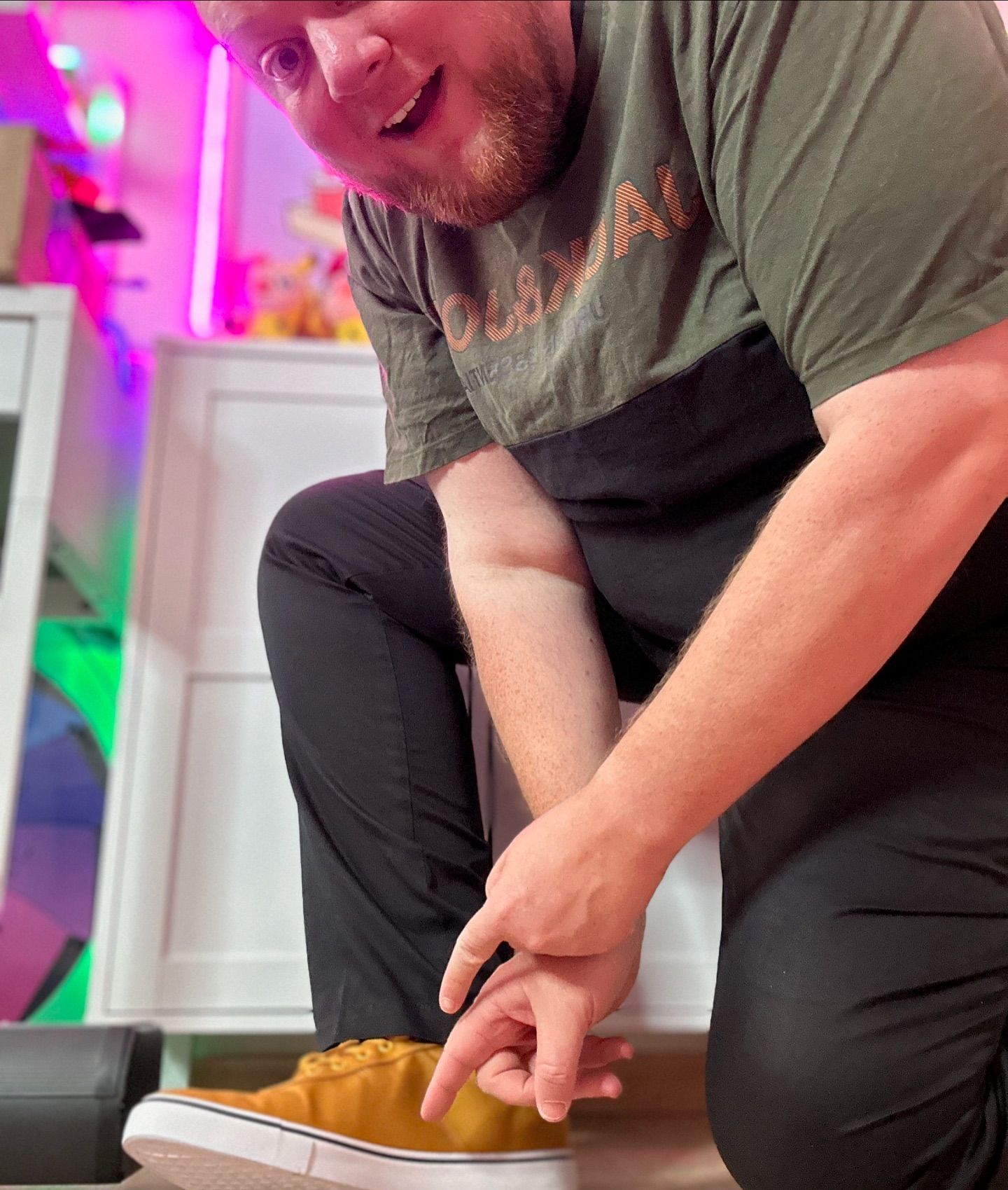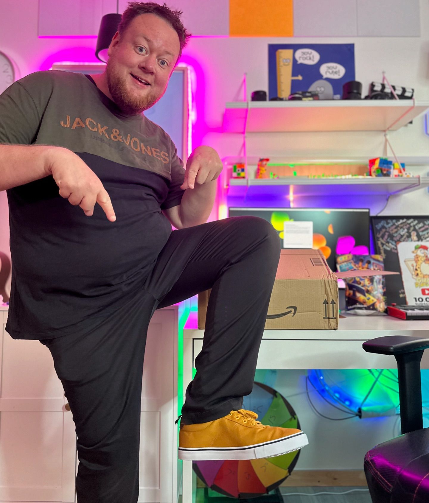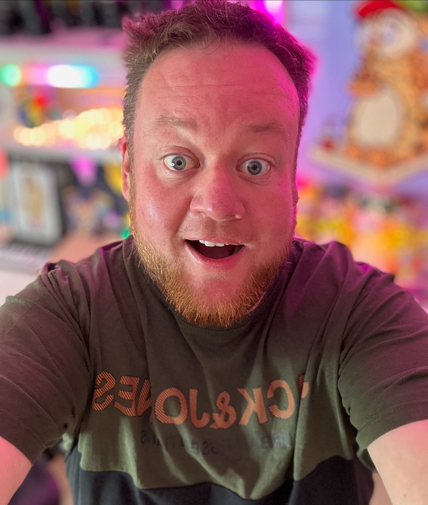 Orv, for første gang i like 15-16 måneder, har jeg en ikke-girafpingvin t-shirt på! 😱 Normalt er jeg altid klædt i girafpingvin merch, men fik lige denne trøje ind af brevsprekken i går, så måtte lige prøve den... måske kan man finde en lille girafpingvin badge et sted og sætte på 😅🎉🤩
