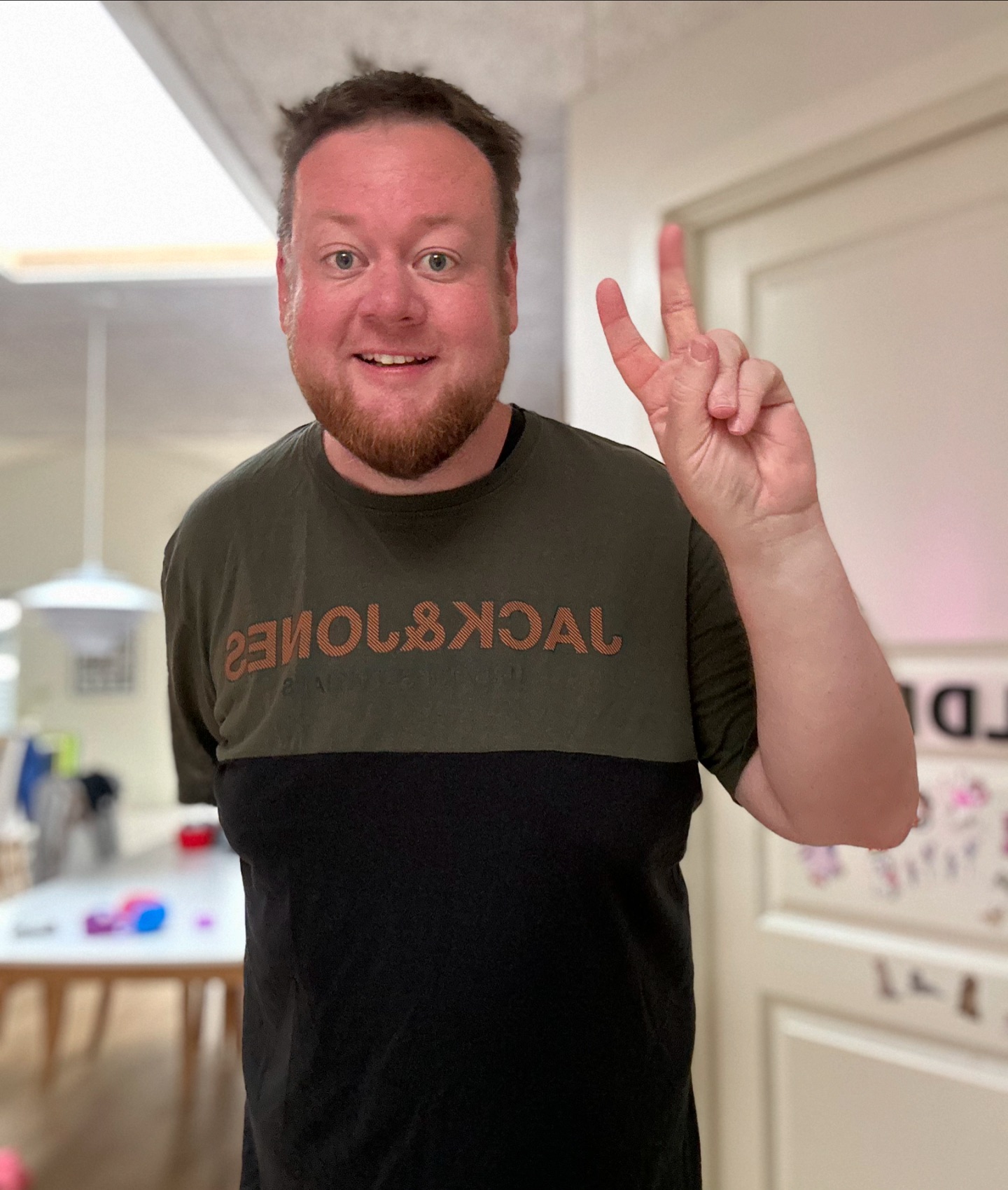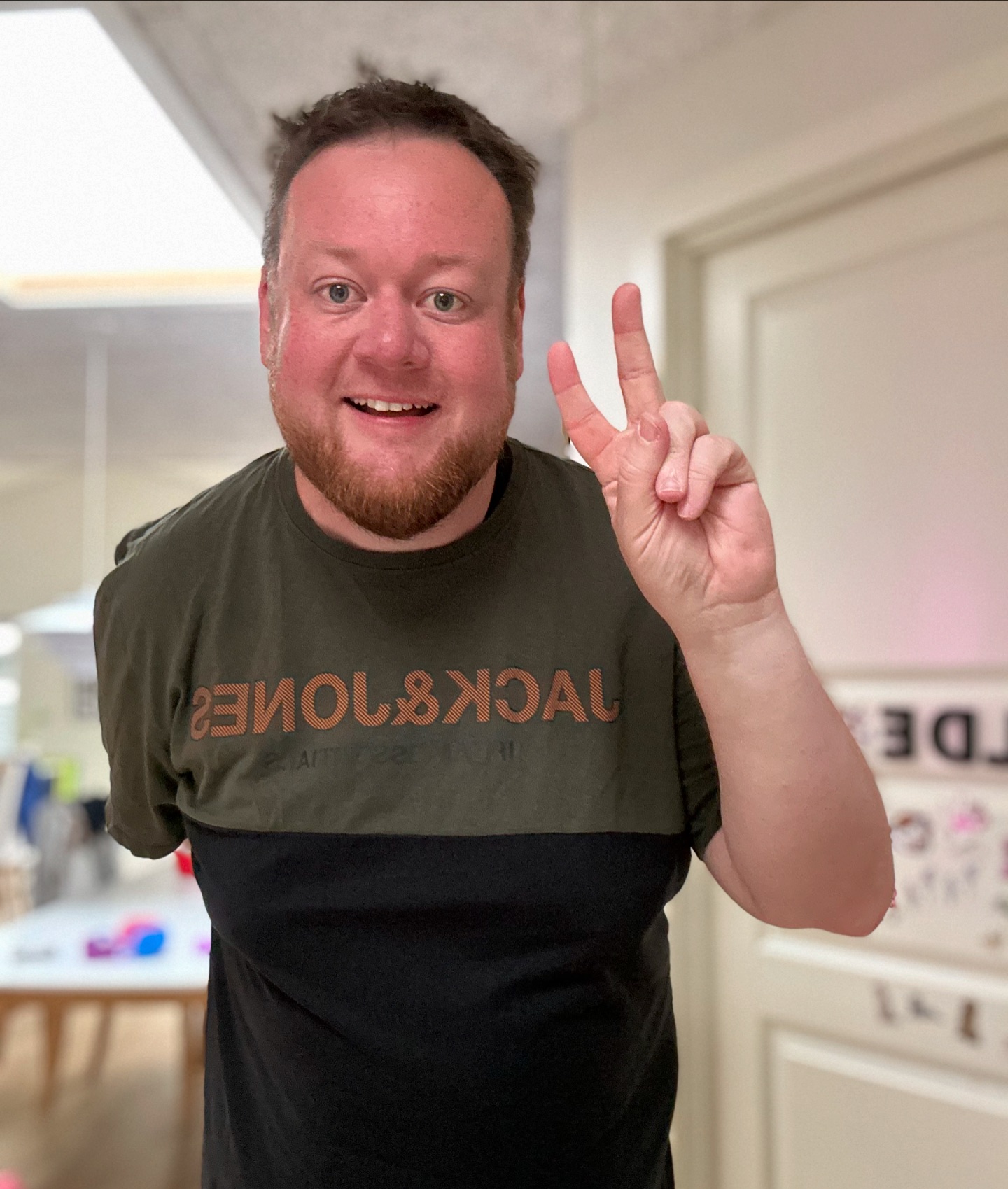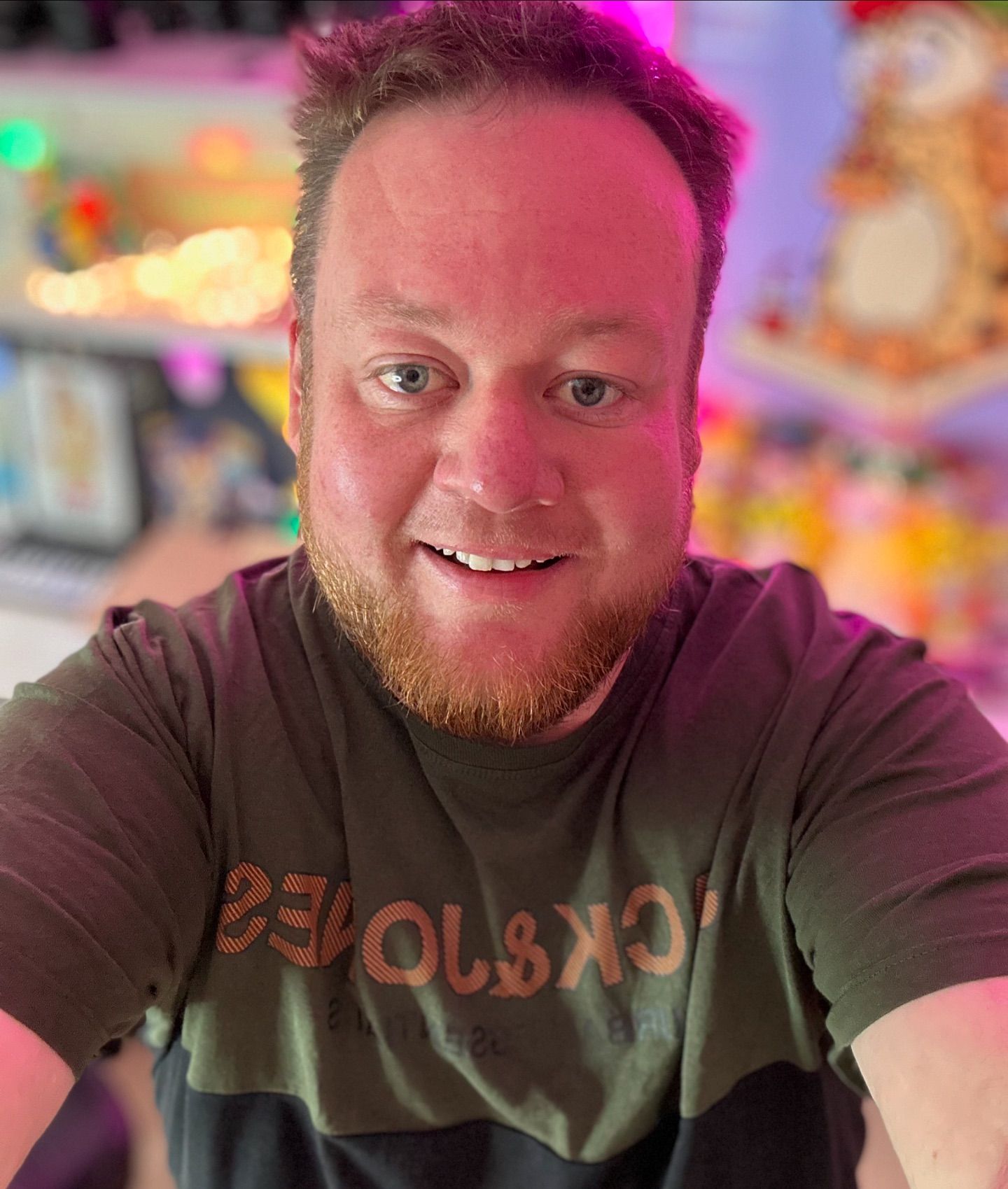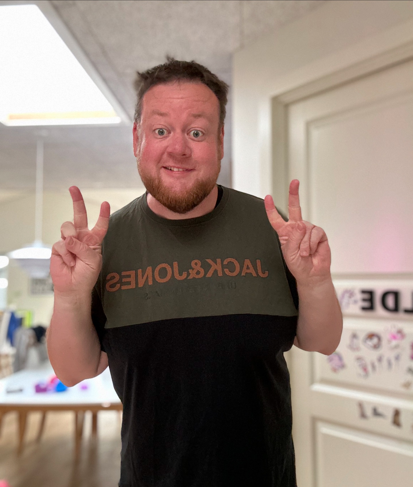 Orv, for første gang i like 15-16 måneder, har jeg en ikke-girafpingvin t-shirt på! 😱 Normalt er jeg altid klædt i girafpingvin merch, men fik lige denne trøje ind af brevsprekken i går, så måtte lige prøve den... måske kan man finde en lille girafpingvin badge et sted og sætte på 😅🎉🤩