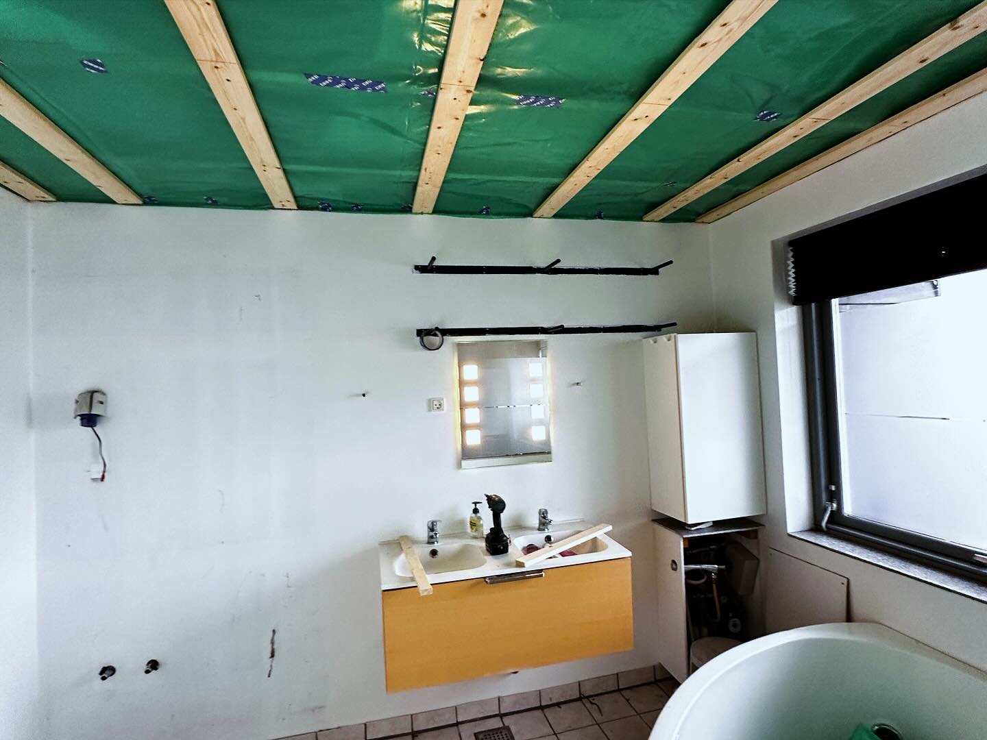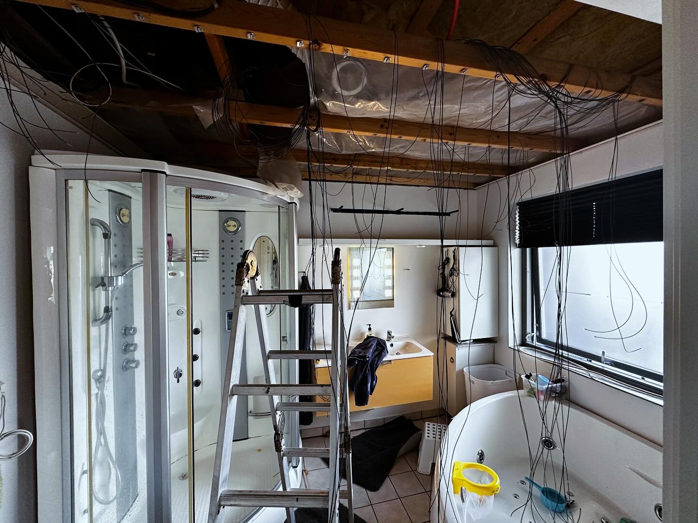 Det første badeværelse - girafpingvin er træt efter endnu en lang dag som tømrerlærling i eget hus. 😂😅
