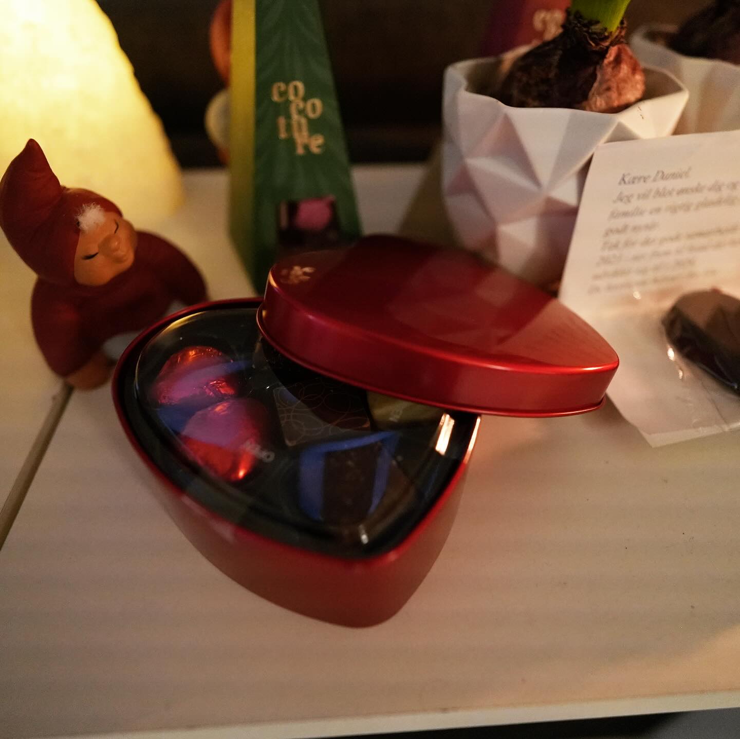 Tusinde tak for overraskelsen - for blomsterne 🌸 og chokoladen 🍫 (som jeg muligvis allerede har snuppet et par stykker af... shh, det er vores hemmelighed! 🤫) og for al din visdom, jeg har suget til mig i år 🧠