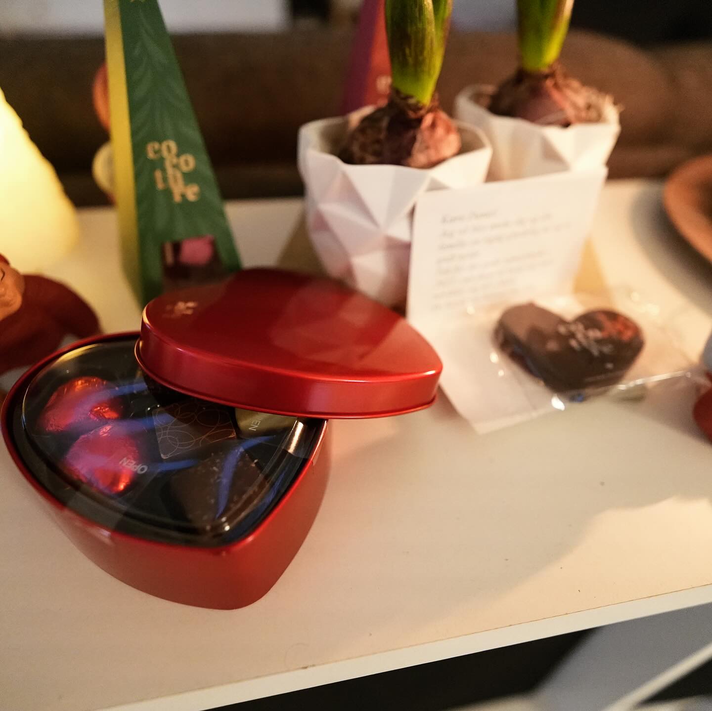 Kom hjem til en glitrende pakke og et hjertevarmt kort fra Mie! Tak for blomsterne og chokoladen (sssh... allerede smagt). Ser frem til nye eventyr sammen! 🚀❤️🌟