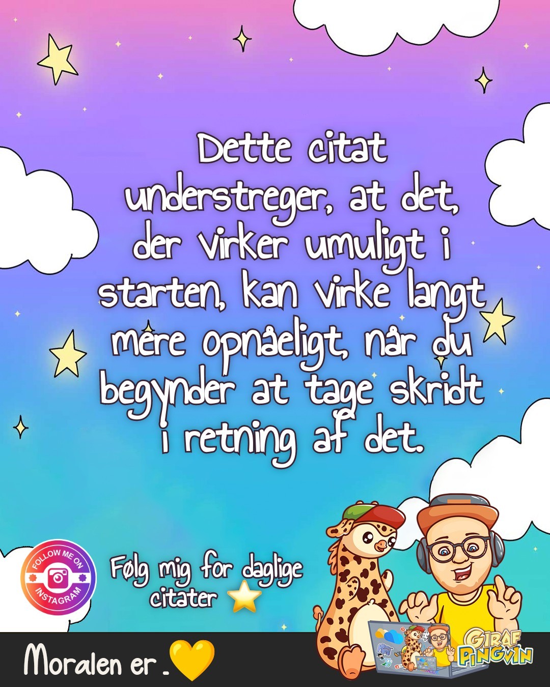 Så, hvad indikerer dette citat? Om noget, skal det minde os om, at det første skridt kan være det hårdeste, men også det mest afgørende. Lad ikke frygten for det 'umulige' stoppe dig. Lav det umulige, til det mulige! 💫🚀