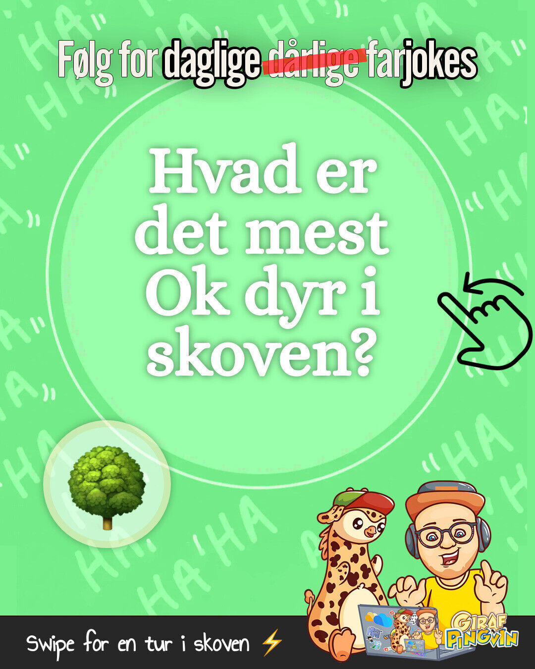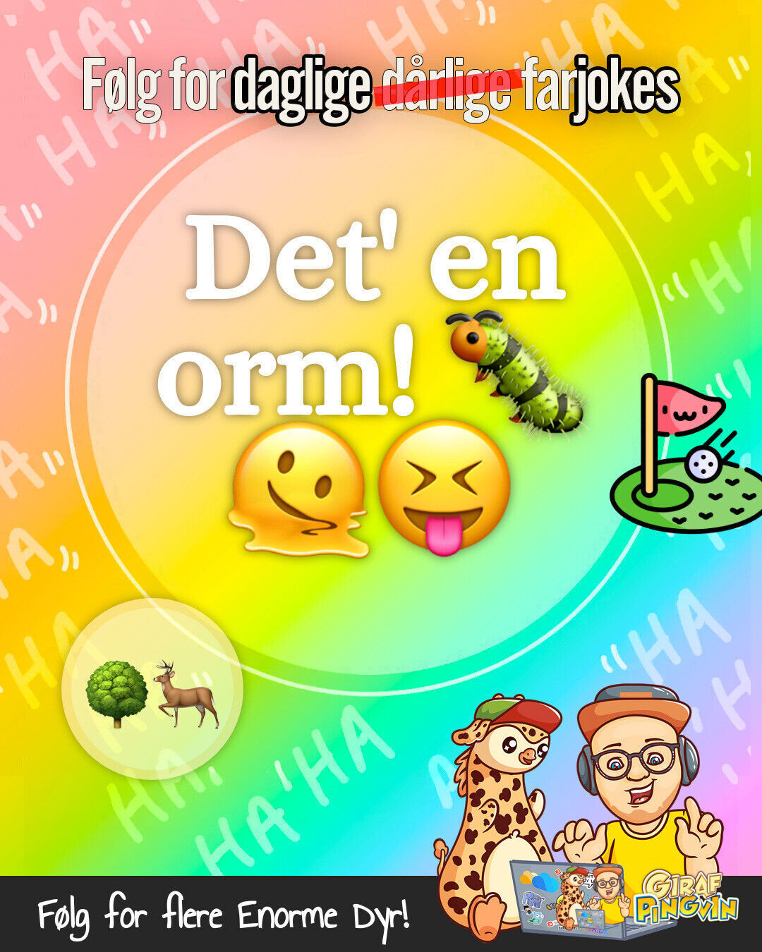 Og mens du troede, det ikke kunne blive bedre... 😜 Ved du, hvad det største dyr i de jyske skove er? Det' en orm! Ah ha! Hold op, girafpingvin har gjort det igen! 🐛🌲
