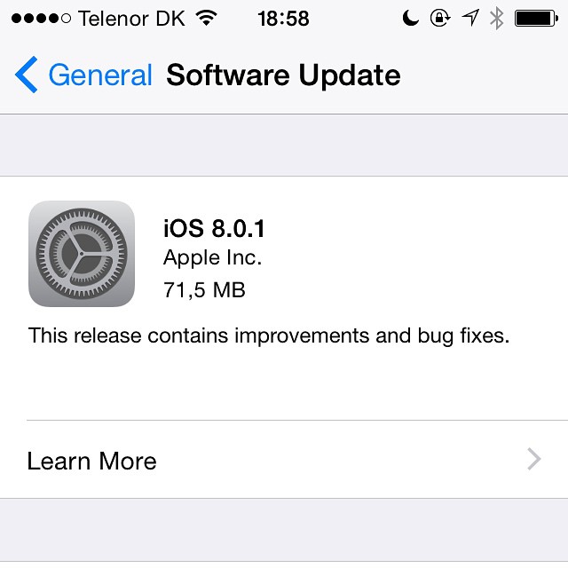 Apple har netop frigivet opdateringen iOS 8.0.1, og den er nu tilgængelig for iPhone og iPad brugere.