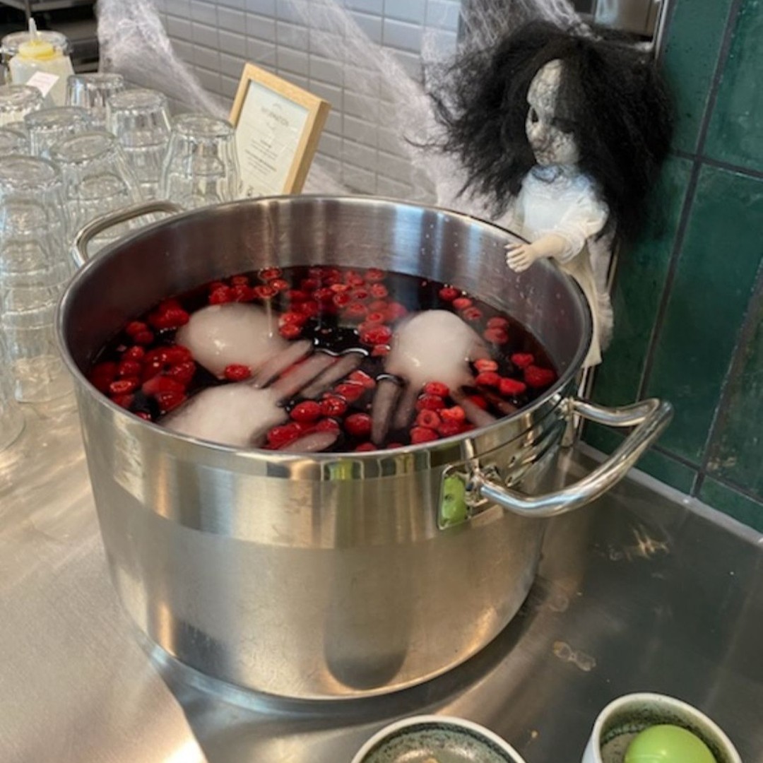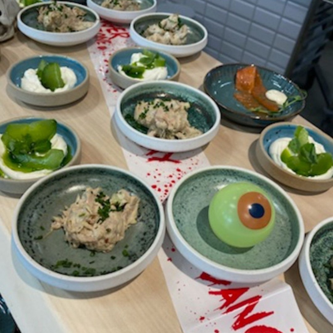 Der var græskar, spindelvæv og selv de uhyggelige katte manglede ikke. Maden var omhyggeligt dekoreret for anledningen, og selv gryderetterne var tilberedt med et uhyggeligt twist.
