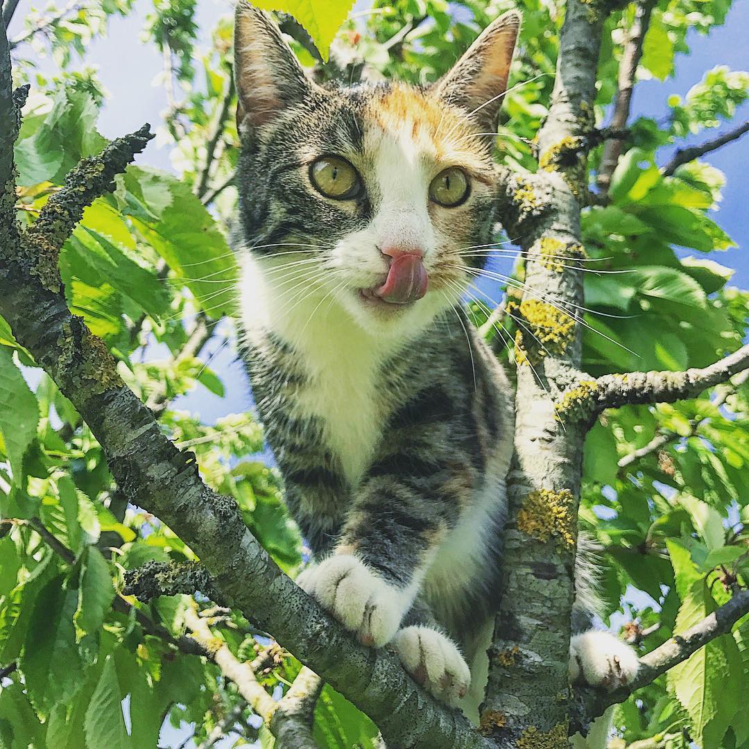 Missekatten på kirsebærjagt i træets højde 🍒😺