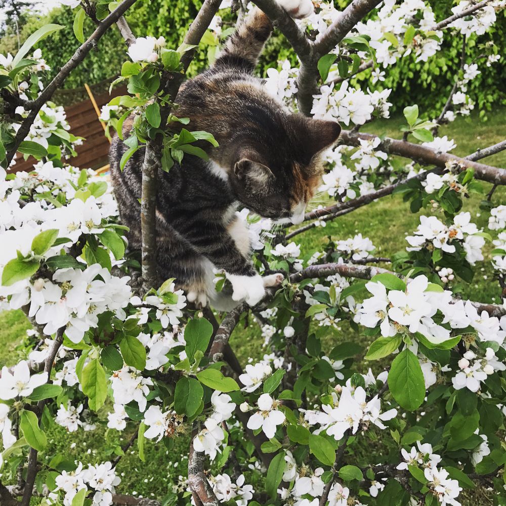 Det ser ud til, at æbletræet bliver Mys yndlingssted i haven denne sommer! 🌳 Hvis du er lige så fascineret af katte og deres adfærd, så følg med her, hvor vi deler flere historier om vores firbenede ven.