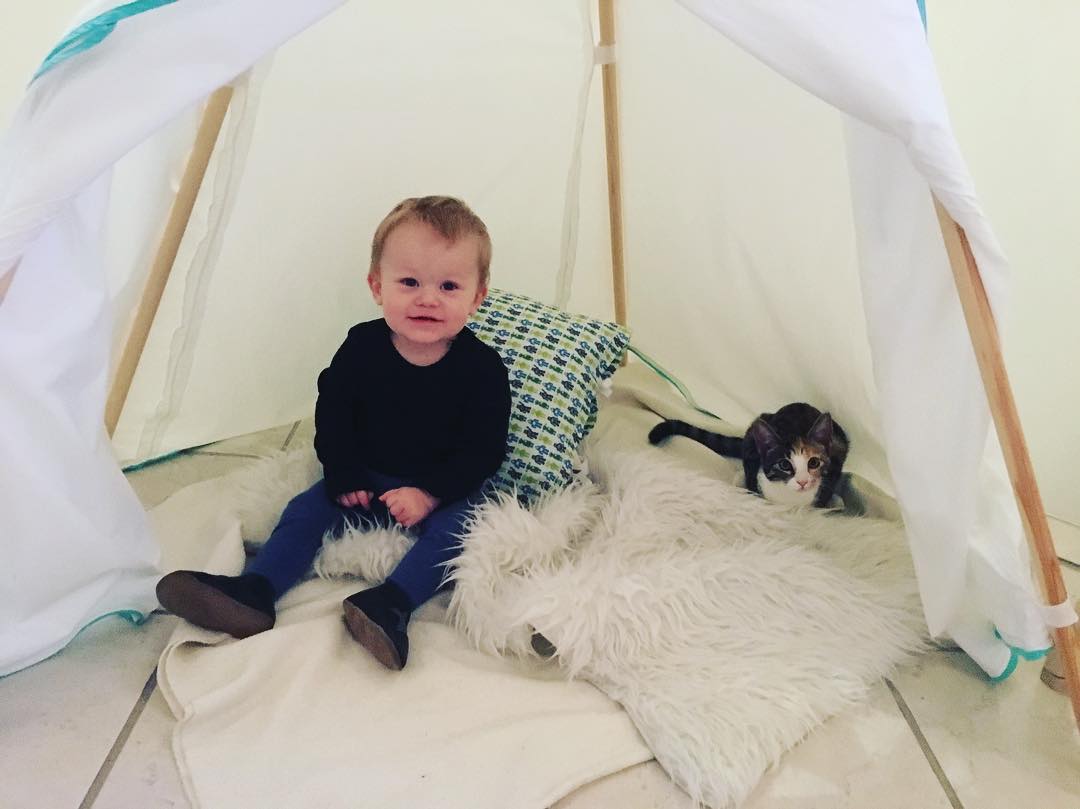 Magnus og My er i telt-paradis, kreeret med kærlighed af Rikke 😽👶🏻❤️