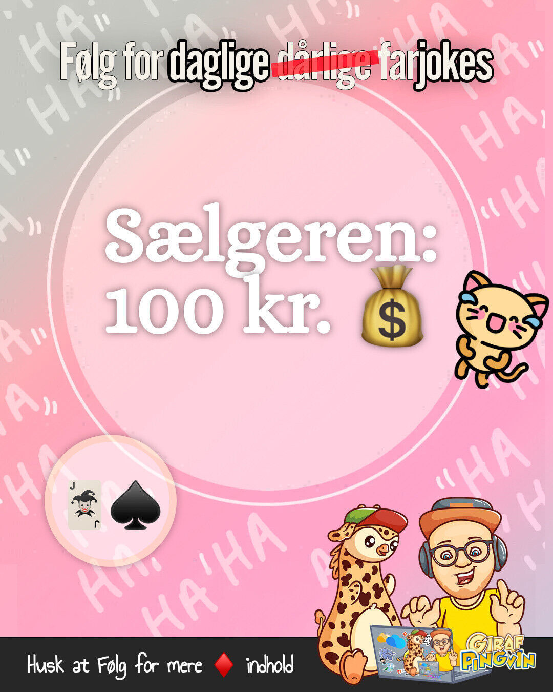 Pepper jeres dag op med en hurtig kortvittighed! Kunden: 'Hvad koster det?' Sælgeren: '100 kr.' Kunden: 'Det er meget for kort!' 🤣👈👀🎴