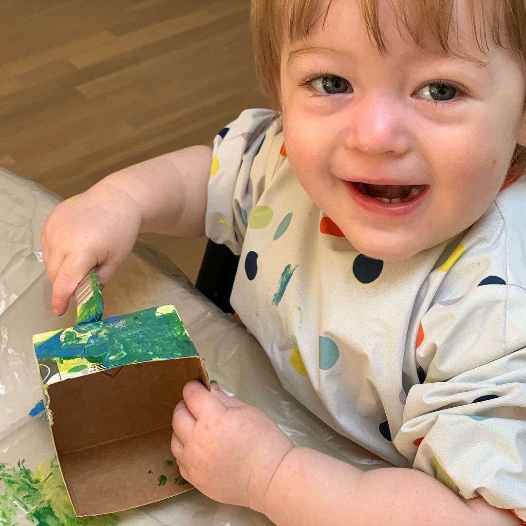 I dag har vi malet mælkekartoner - nu er de klar til vat og karsefrø 🎨🖌️🌱🌱🌱