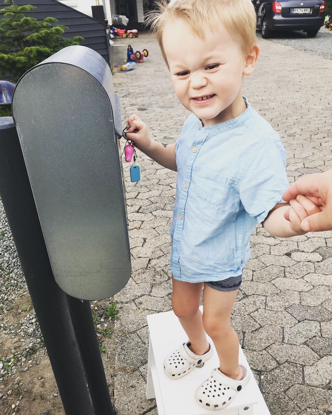 Magnus har i dag taget sig af den vigtige opgave at tømme postkassen. Det er altid spændende at se, hvad der gemmer sig af breve og postkort i dagens fangst.