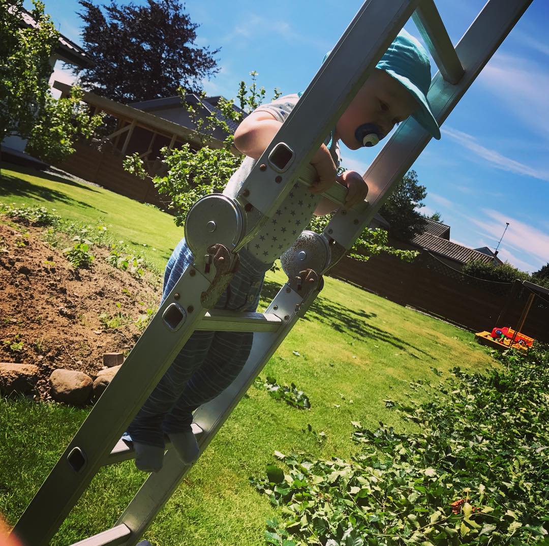 Magnus har besluttet sig for at deltage i havearbejdet og hjælpe med at trimme den høje hæk. 😍🌞