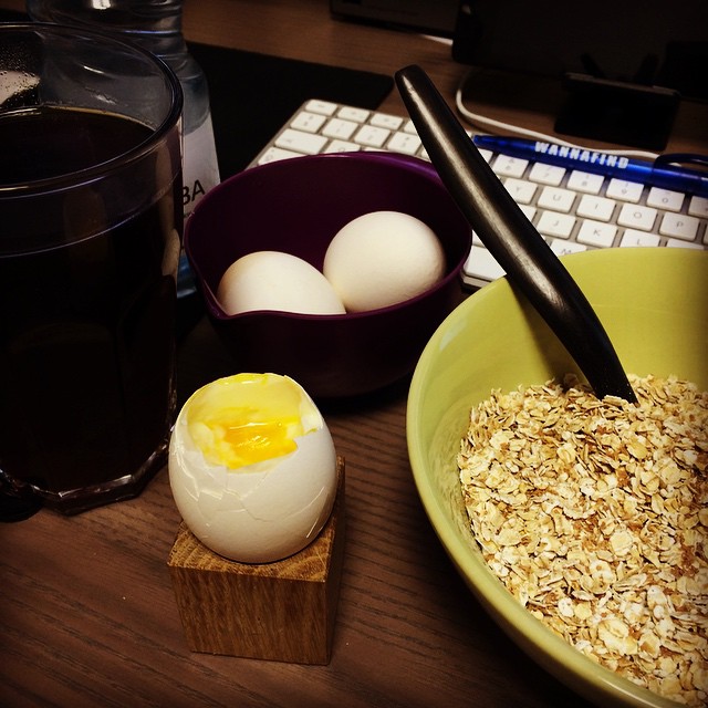 Den perfekte morgenmad. Æg. Gryn. Kaffe. Kildevand... og naturligvis et glas mælk :-)