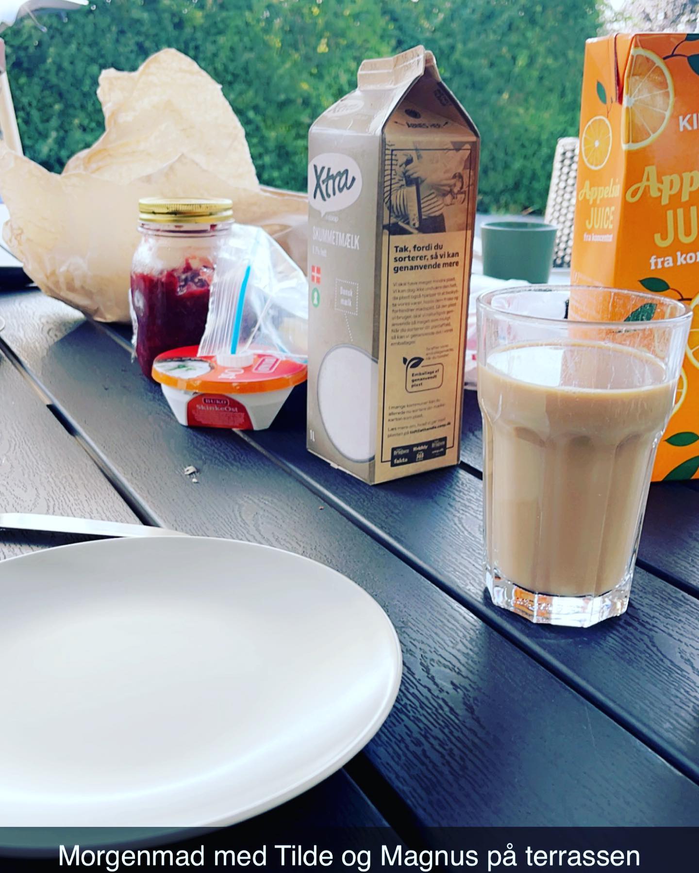 I dag var det dejligt vejr lige fra morgenstunden, så Tilde og jeg besluttede at hente rundstykker ved bageren og spise ude på terrassen.