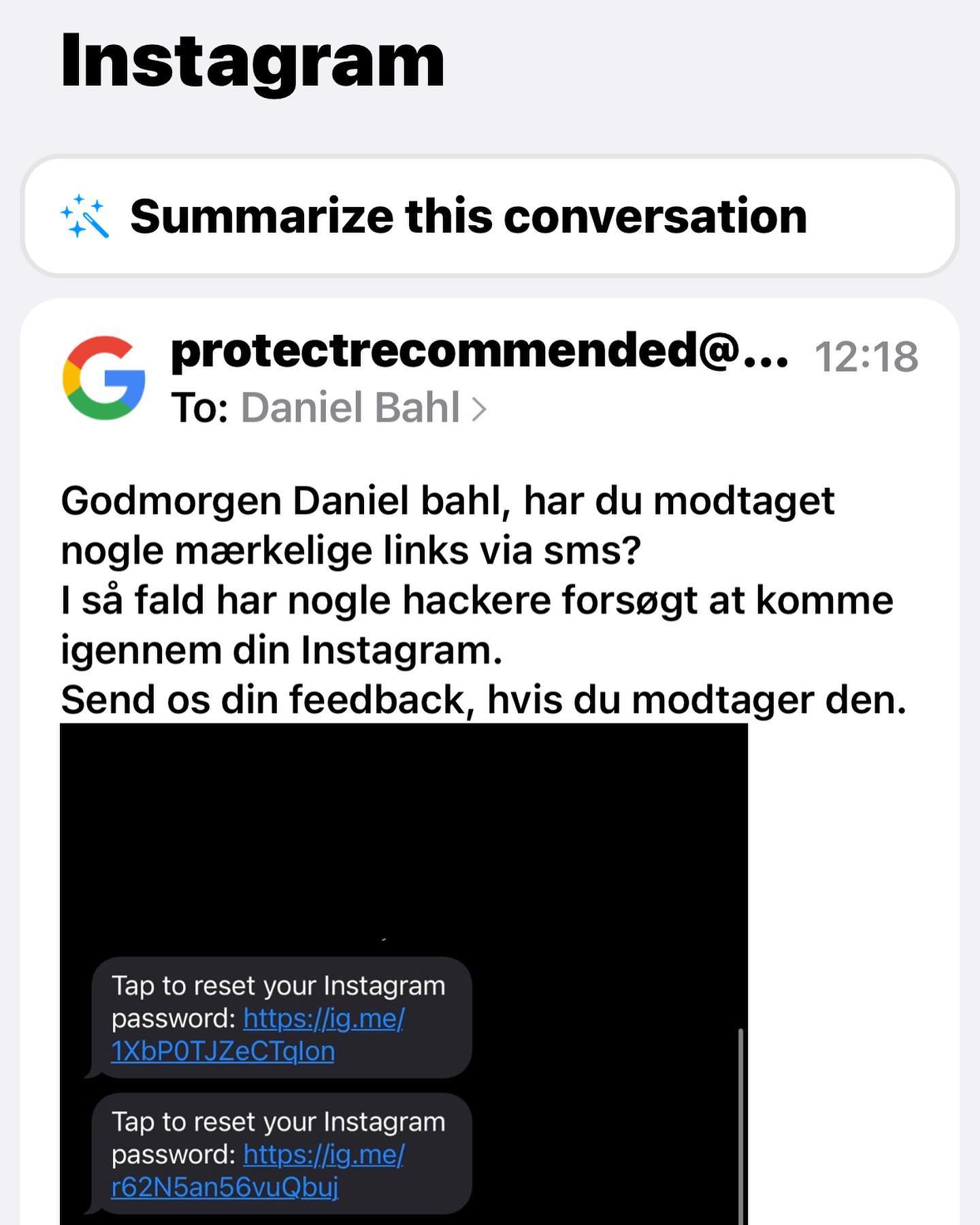 Pas på derude! De bliver bedre og bedre til at phishe 🎣. Det er vigtigt aldrig at trykke på links og aldrig stole på mails, der ikke kommer fra et officielt @domæne. Husk, Instagram support sender IKKE fra Gmail.com 😂🫶🏻