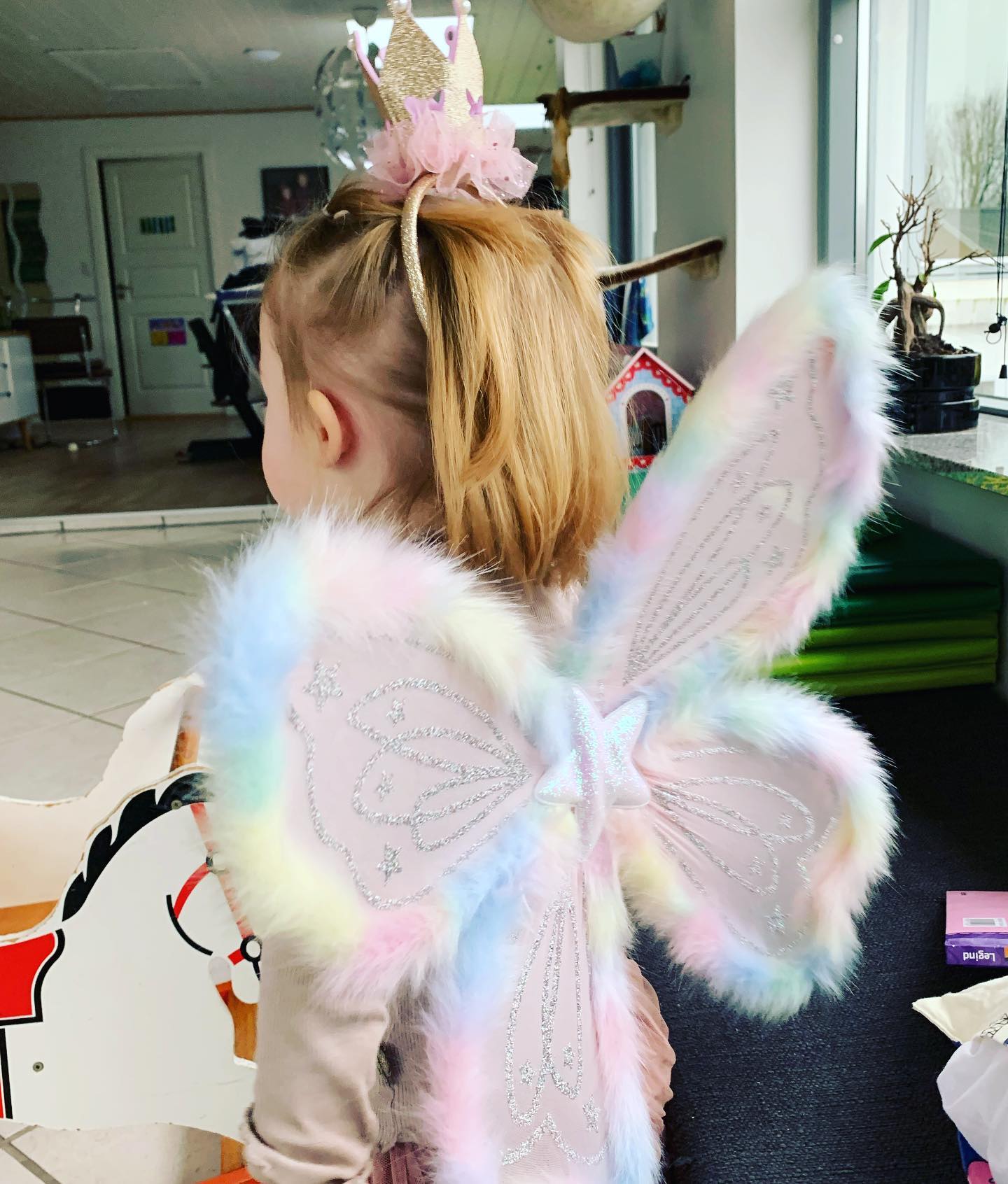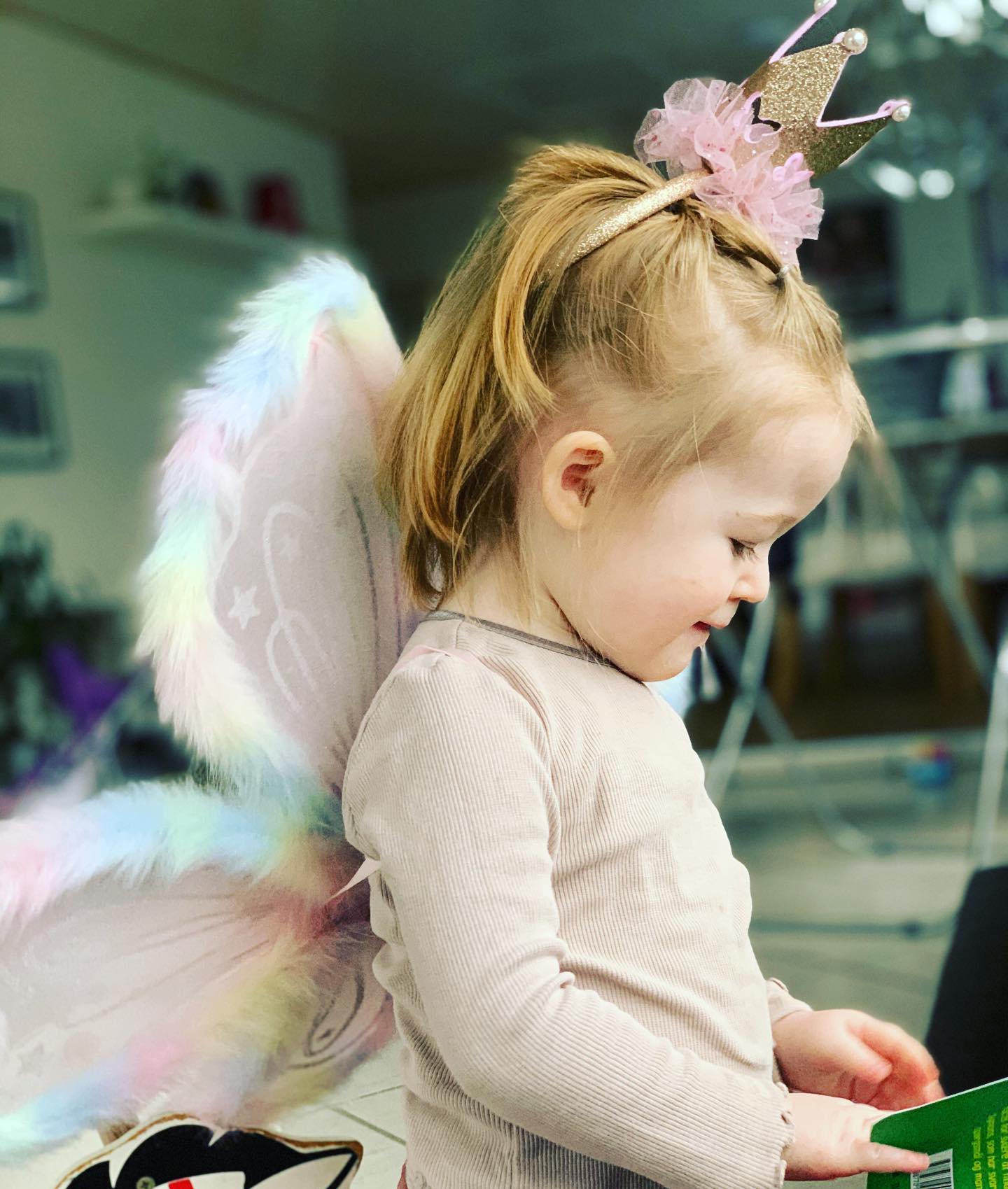 Min lille glitrende prinsesse-fe klar til fastelavnens magiske eventyr! 🧚♂️👑✨