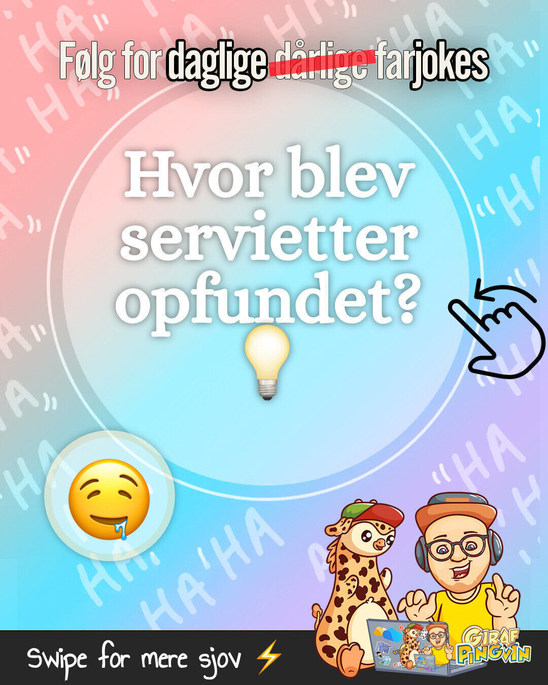 Er du klar til at opdage serviettens oprindelse i Servietunionen og grine af Kong Sauls fars kongelige hagesmæk? 🦒🐧😂🍽️👌