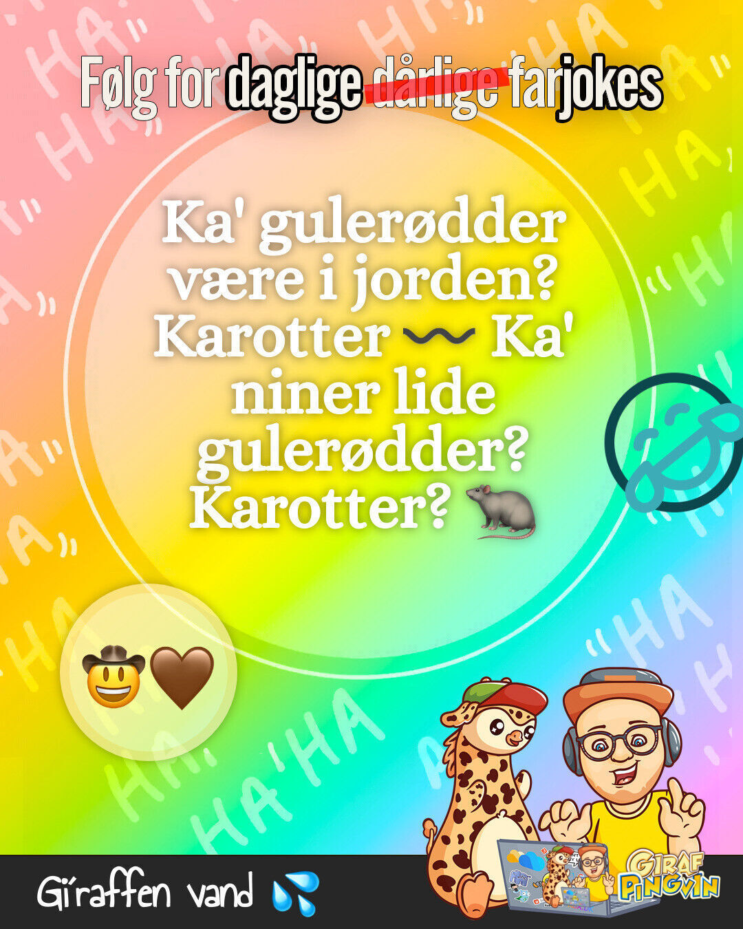 Girafpingvinen har set en kaffebønne ride på en hest og nyde kakao likør! Altid tænk kreativt og grin mere 🦒🐧😂☕🐎🍹🍪
