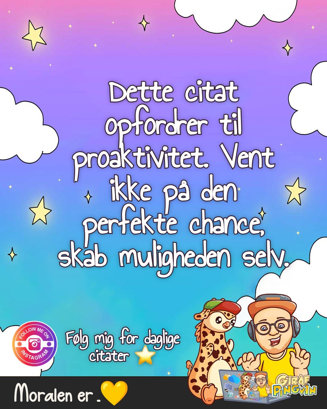 Hvad betyder dette egentlig? Det handler om proaktivitet. Ofte i livet venter vi på det perfekte øjeblik, den perfekte chance, det perfekte job, den perfekte partner... men virkeligheden er, at de mest meningsfulde muligheder ikke 'bare' kommer. Vi skal SKABE dem ✨