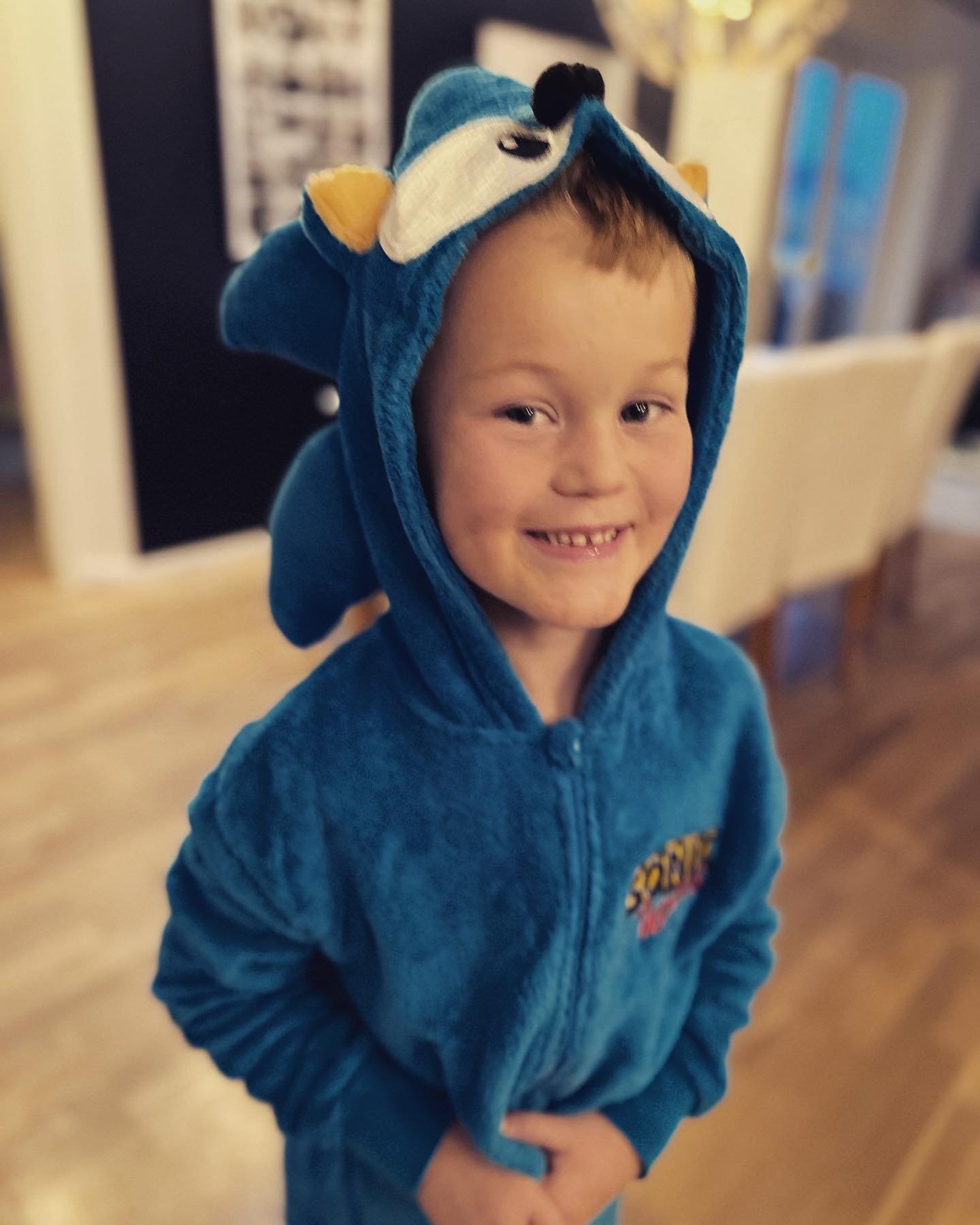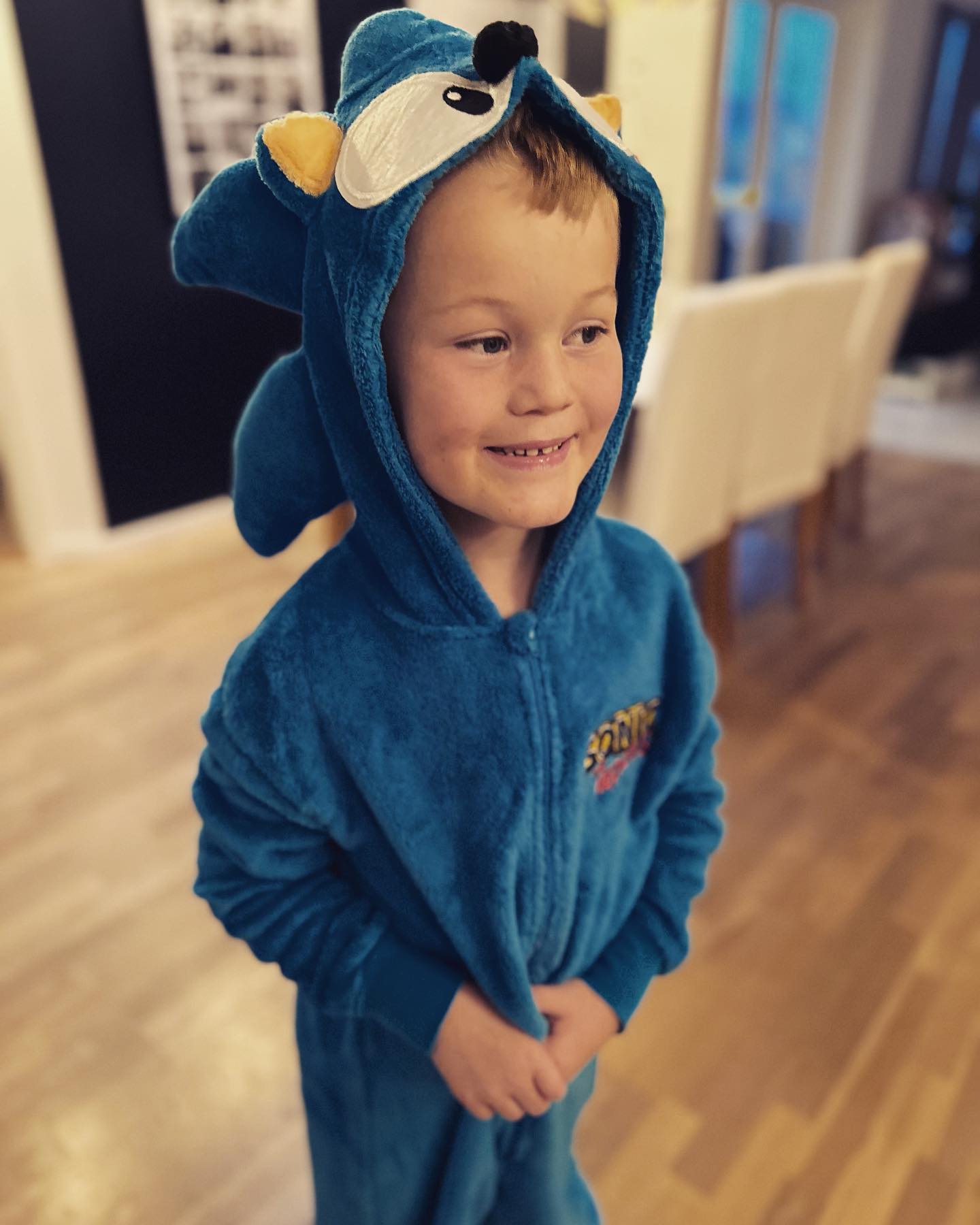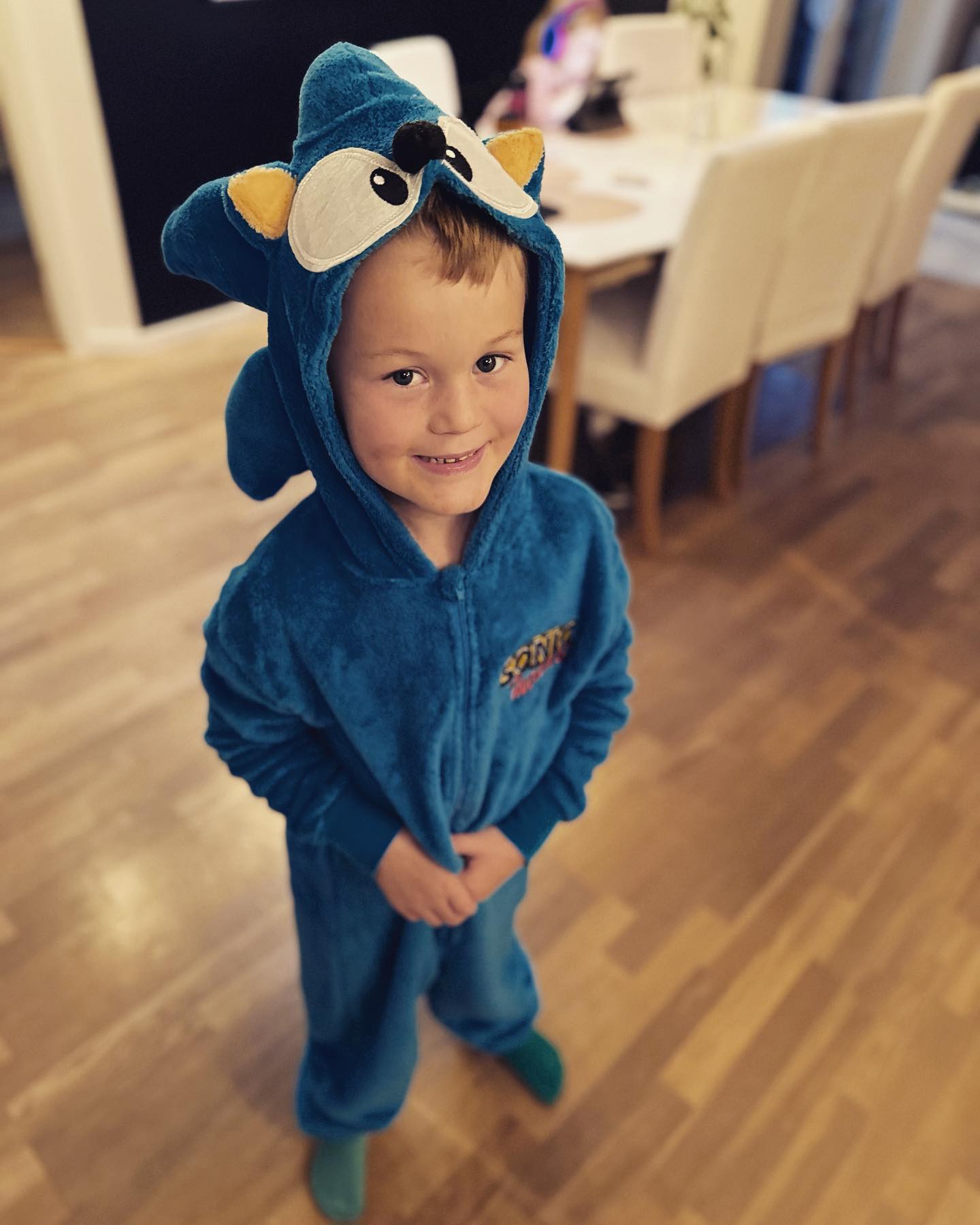"Eggman kan bare prøve!" Min søn scorede lige en blød Sonic onesie – klar til action og hygge! 🦔💙😍