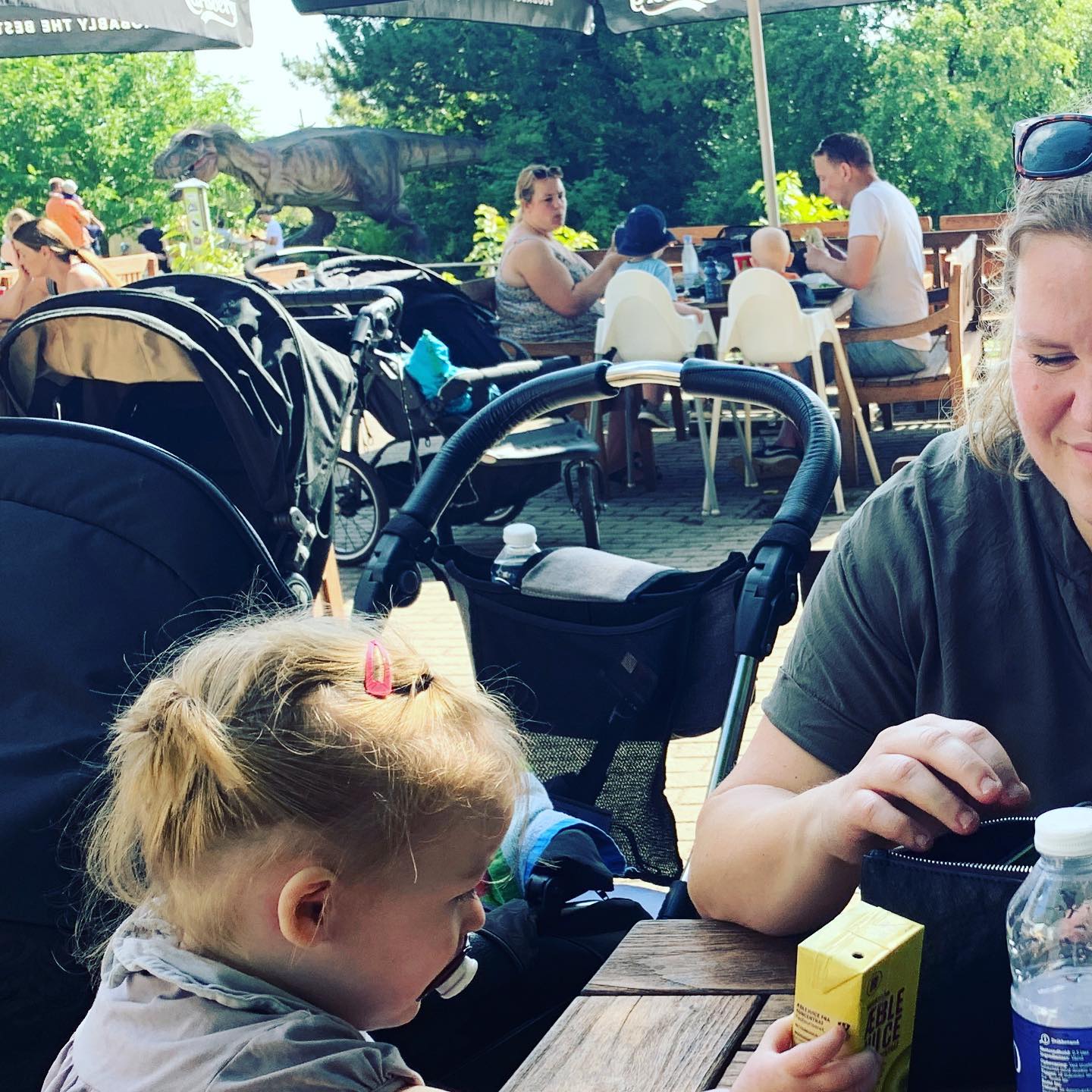 Dinosaurne i Aalborg Zoo 🦖 er et kæmpe hit 🤪 selv når vi spiser kigger en T-Rex forbi.