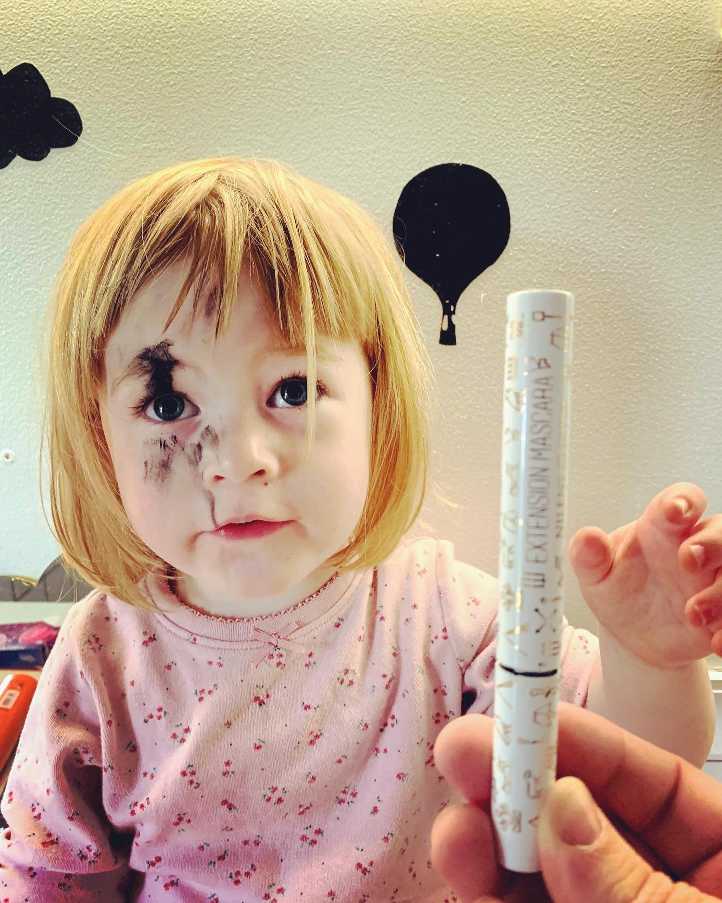 Selv når der er mere makeup på hende end i makeuppungen, formår hun altid at få os til at smile og grine. Små øjeblikke som disse er uvurderlige og minder os om glæden ved forældreskabet.