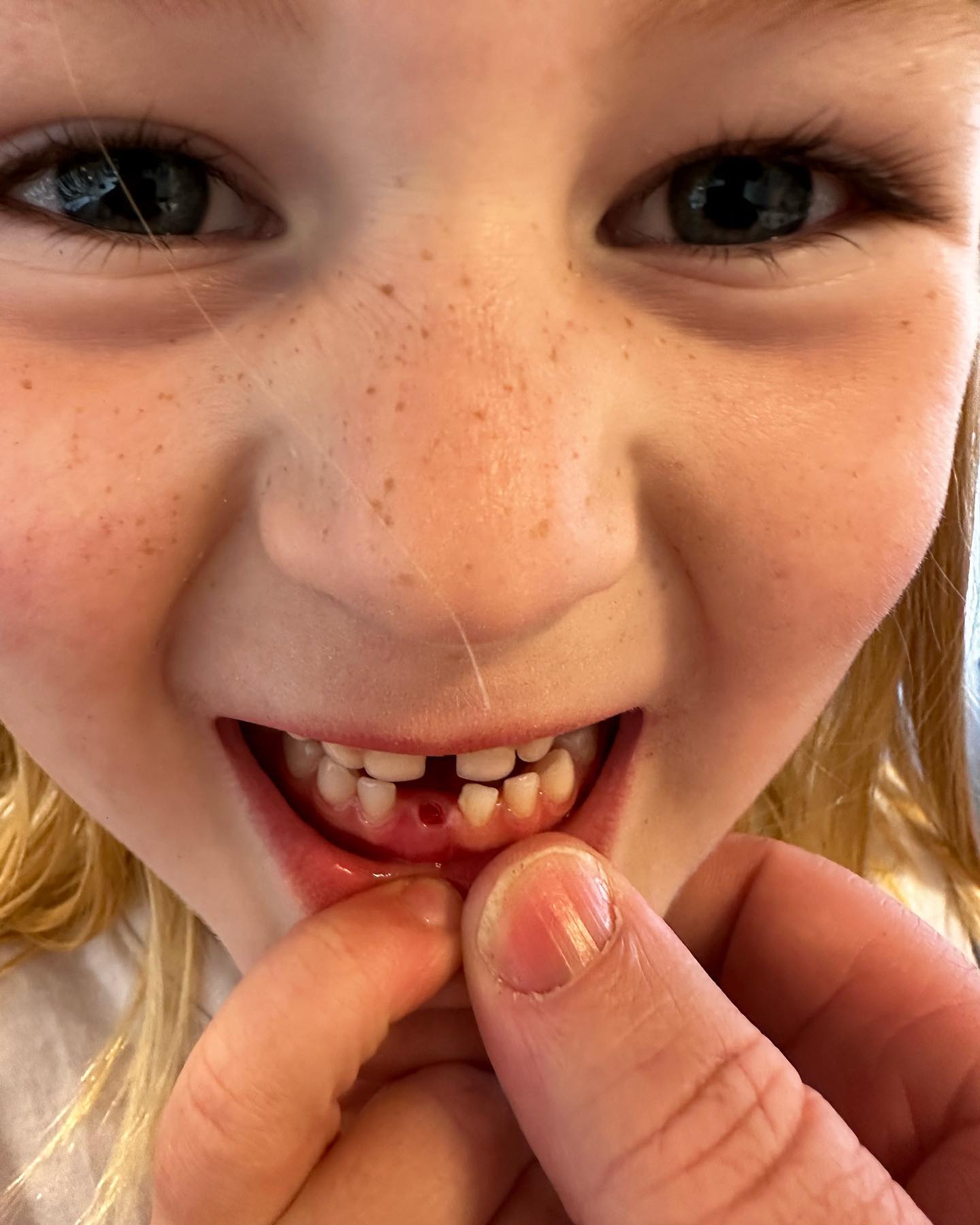 Tilde har tabt sin første tand, og det er stort 💛🦷🥳. Hun er så glad og stolt.